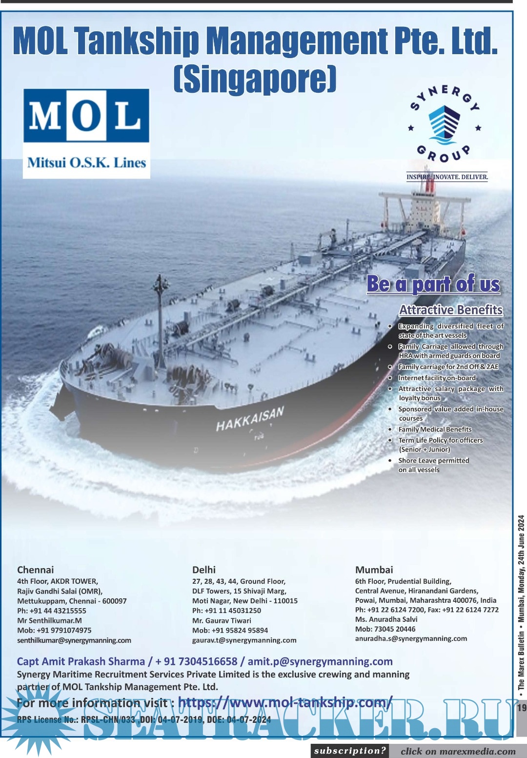 Description: The No. 1 Twice weekly employment magazine for Seafarers.