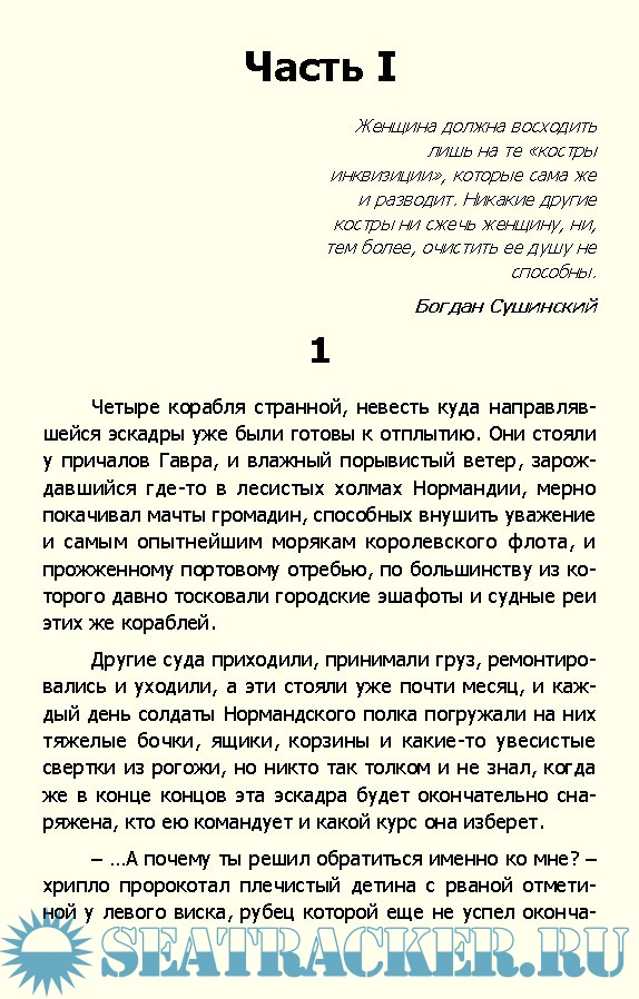 Описание: Основанный на реальных событиях новый приключенческий роман Богдана Сушинского, лауреата литературной премии имени Александра Фадеева (2007), рассказывает о судьбе юной и своенравной герцогини Маргрет де Роберваль. Узнав о тайном обручении Маргрет с разорившимся шевалье д'Альби, отец, дабы избежать позора, отправляет ее с эскадрой своего брата, французского адмирала Роберта де Роберва-ля, к берегам Канады осваивать земли "Новой Франции". Но судьба уготовила юной герцогине еще одно испытание: оскорбленный отказом Маргрет разделить с ним постель адмирал приказывает высадить непокорную племянницу на необитаемом острове.