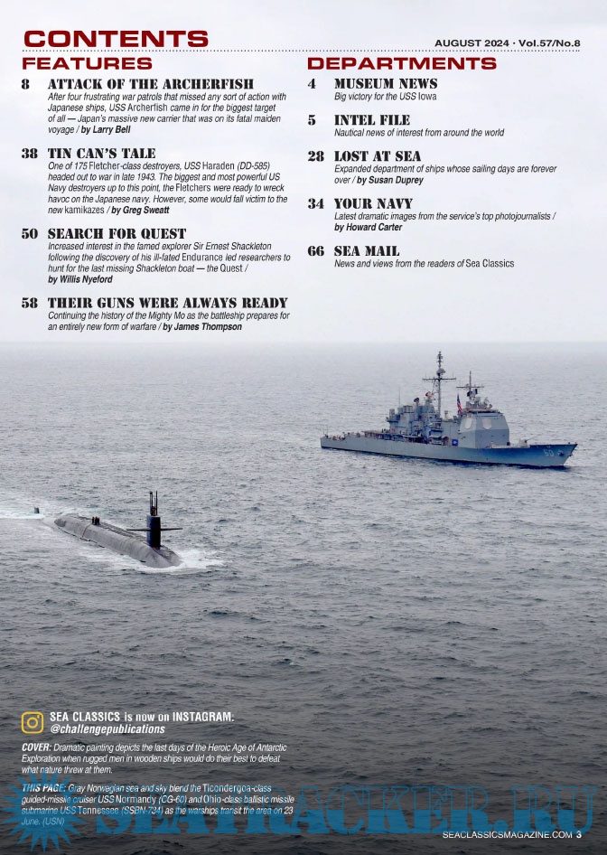 Description: Read about the world’s major sea battles and first-hand accounts from the men who fought and lived through them. From the early days of sailing vessels to the post-Cold War nuclear navies of today, Sea Classics has it all.