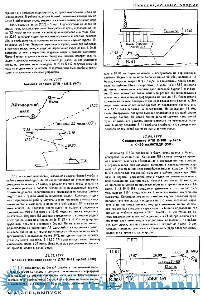 Описание: Сборник описаний навигационных аварий ВМФ СССР, происшедших за последние примерно двадцать лет. В ней даны описания почти двухсот навигационных аварий и происшествий, иллюстрированных многочисленными схемами и фотографиями. Автор не считает себя вправе давать исчерпывающий анализ тому или иному происшествию. Это дело специалистов аварийно-спасательной службы, штурманов, специалистов кораблевождения. Цель данной книги - дать краткие сведения о наиболее типичных авариях советского ВМФ, связанных с изъянами кораблевождения. Настоящее издание не преследует цель очернить советских моряков и их мастерство.
