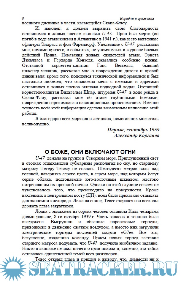 Прошли десятилетия, а вопрос так и оставался открытым. Александр Корганов провел настоящее расследование, в ходе которого ему удалось встретиться не только с оставшимися в живых членами экипажей линкора и подлодки, но и с автором идеи этой атаки - гроссадмиралом Карлом Дёницем, отозвавшимся об этой книге как об увлекательном и правдивом повествовании.