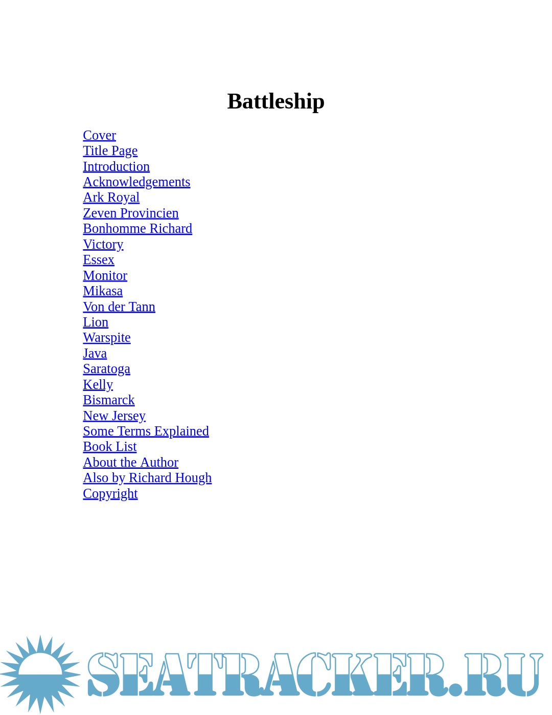 In this riveting book, leading historian Richard Hough examines fifteen of history's most significant and interesting battleships, from Lord Howard Effingham's Ark Royal, which held the Spanish Armada at bay, to the American New Jersey, which took part in three wars, and whose guns still remain ready for action. From the mighty German Bismarck of 1941, destroyed on its first operation voyage, Battleship ranges to Admiral Nelson's legendary HMS Victory, still a flagship after more than 200 years