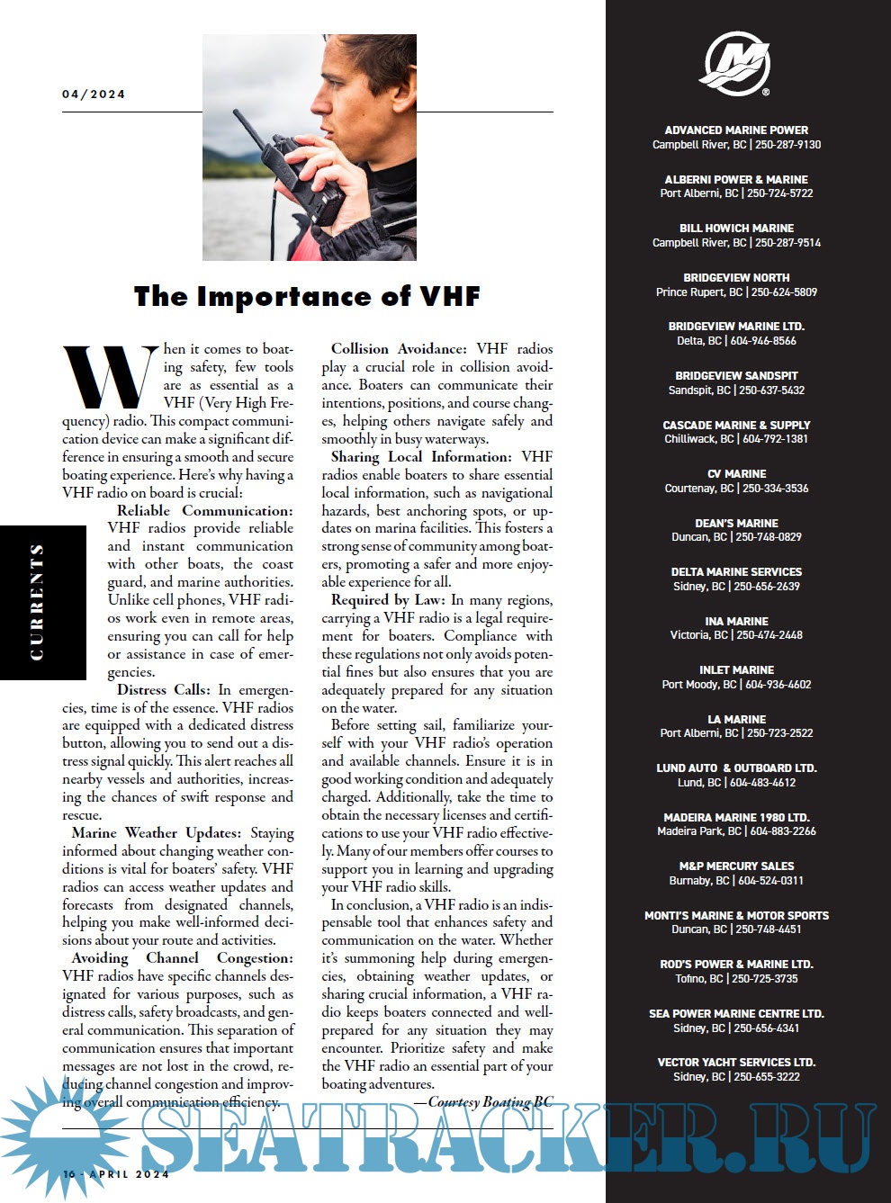 Description: Pacific Yachting magazine has been serving the recreational boating community of B.C. and the Pacific Northwest for over 43 years. Our publication is available in print and digital and offers high-quality, up-to-date content on a variety of boating topics including cruising destinations, safety education, seamanship, maintenance and repairs, do-it-yourself projects, boat and gear reviews, current issues and tons more. Pacific Yachting offers something for every boater—power and sail. We also have a printed and online boaters directory with more than 1,800 marine businesses and services.