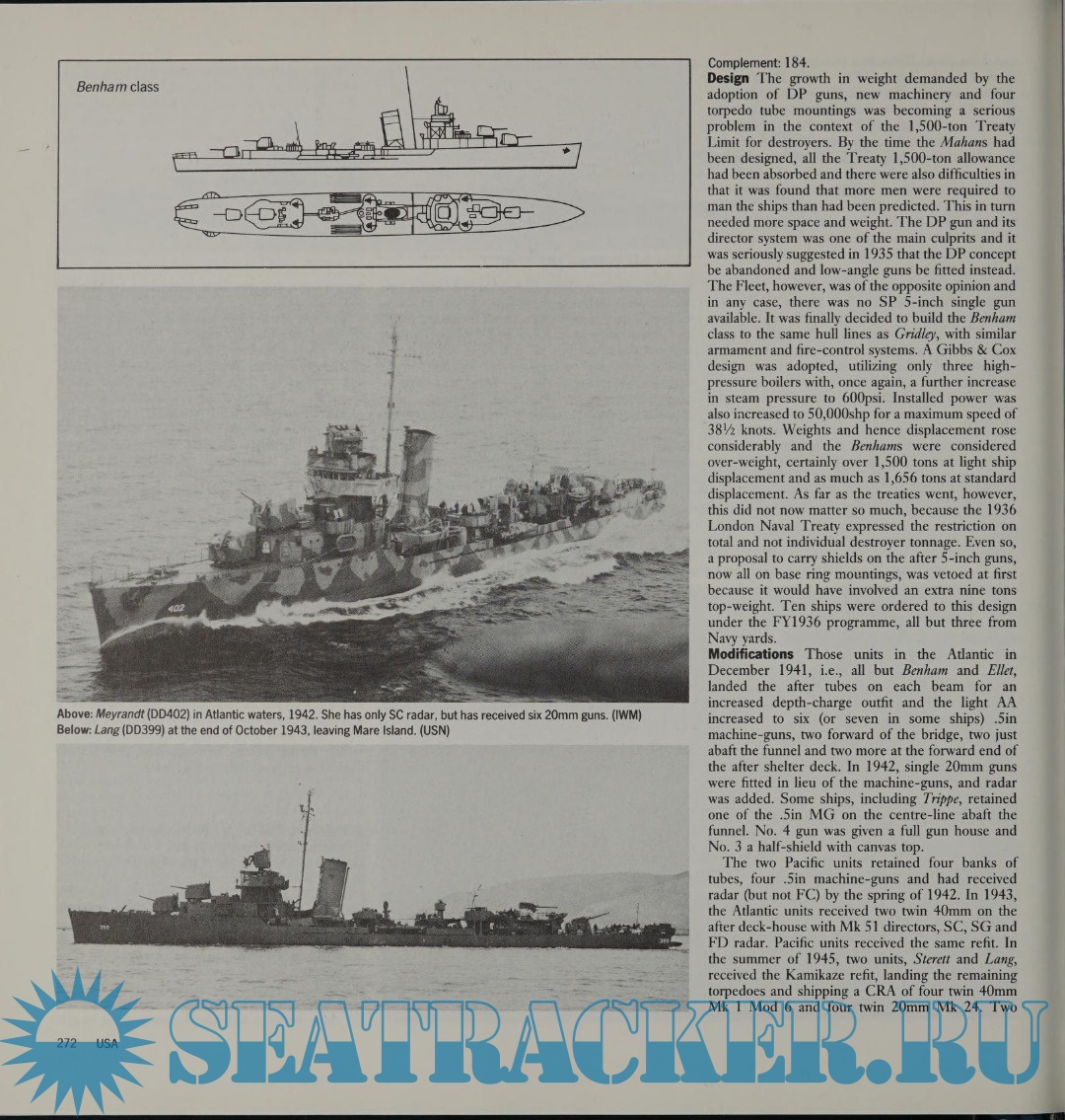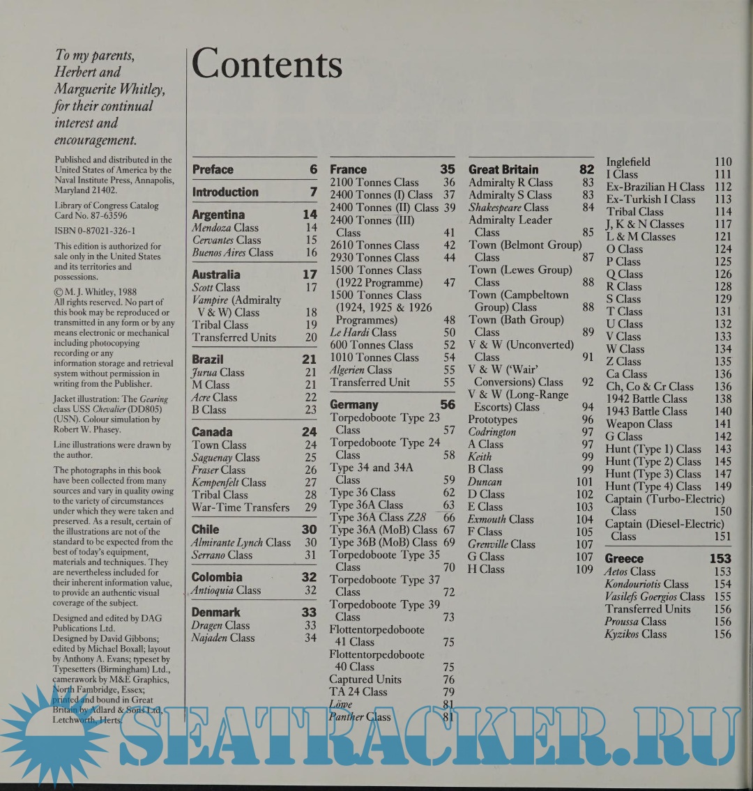 Year: 1988 Language: English Author: Whitley M.J. Genre: Encyclopedia Publisher: US Naval Institute Press Format: PDF Quality: eBook Pages count: 328 Description: Fast, compact and formidable, destroyers were in the thick of the action in every theater of operations during the Second World War. They performed a wide range of duties, often of the most hazardous nature. Not only were they assigned to escort the main battle fleets into action, but they were called upon to escort convoys and protect them from attacks by aircraft and submarines. Illustrated with hundreds of photographs and line drawings, this reprint of the popular 1988 book comprehensively details in one volume all the destroyers built between 1939 and 1945 by the navies of the world. Each class is described under three design, modification, and service. The author, a leading World War II historian, provides a wealth of data on each ship's builder, dimensions, armament, performance, and fate as well as keel-laying, launch, and commissioning dates. Such a detailed record of these highly effective, versatile ships will prove invaluable to warship enthusiasts everywhere.