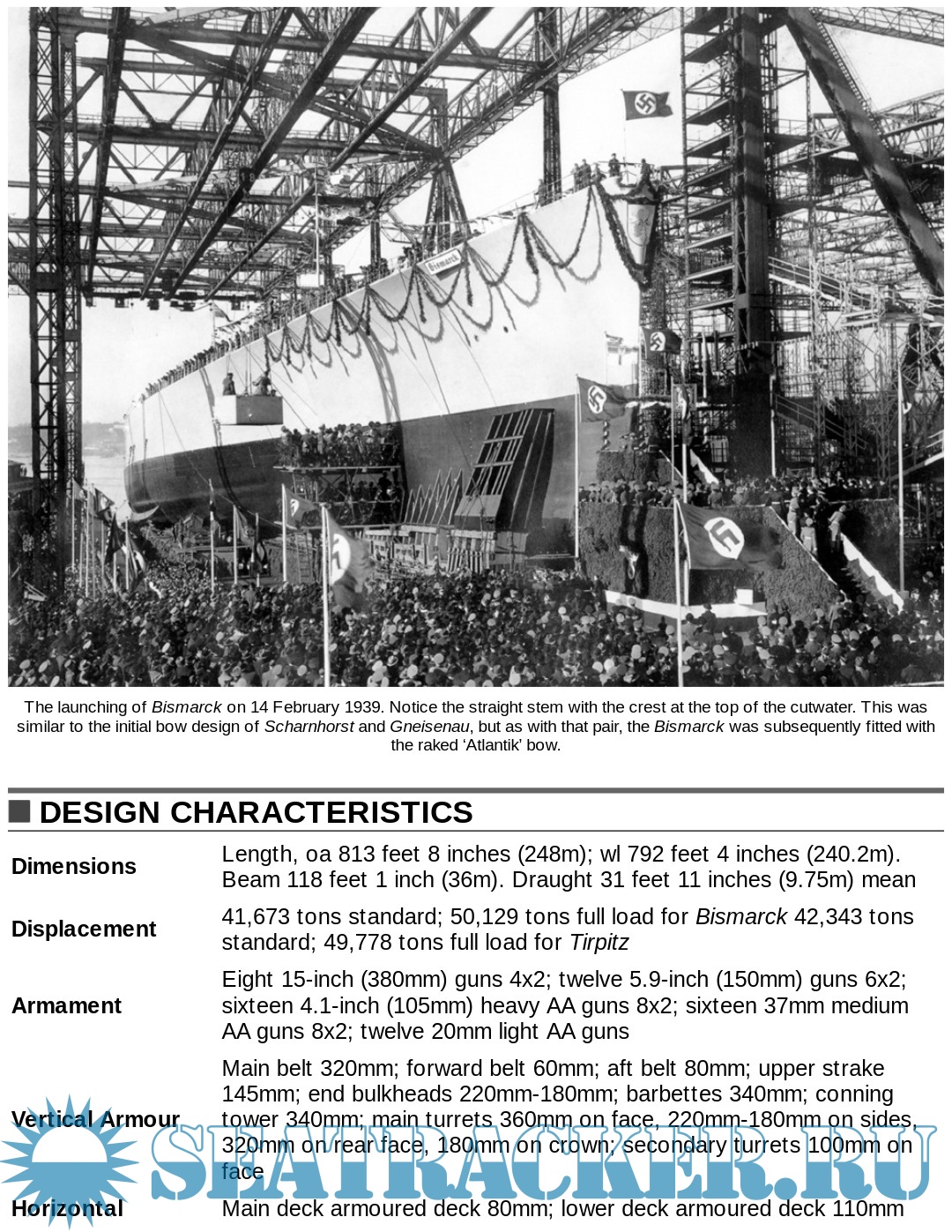 Description: Германские линкоры "Бисмарк" и "Тирпиц": характеристики, вооружение, боевой путь.