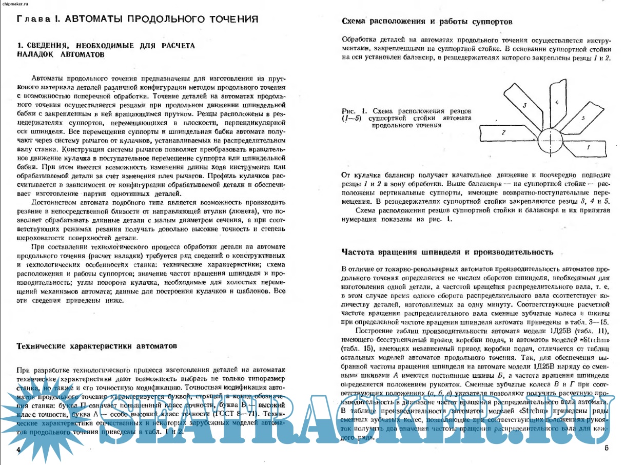 Описание: В справочном пособии рассмотрены характеристики одношпиндельных токарных автоматов продольного точения отечественного и зарубежного производства и способы их наладки. Собраны воедино ранее разрозненные справочные данные: по дополнительным устройствам, расширяющим технологические возможности автоматов, режимам резания, применяемым режущим и вспомогательным инструментам. Рассмотрены отдельные виды обработки деталей, выполняемой на токарных автоматах. Даны методика расчета карт наладок и материалы для расчета норм времени и количества одновременно обслуживаемых автоматов.