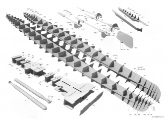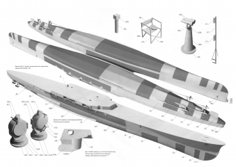 Описание: 43 листа цветных выкроек и инструкций для изготовления бумажной модели японского тяжёлого крейсера IJN Takao в масштабе 1:200