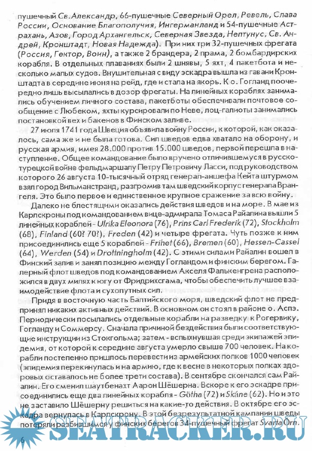 Описание: Модное ныне понятие забытая война как нельзя лучше подходит к этому военному конфликту на Севере Европы в середине XVIII века. В полной мере это относится и к действиям на море 1741 - 1743 годов, о чём нет практически ни одного специального современного исследования. В появившихся же в последние годы многочисленных работах общего характера по русской морской истории события этой войны на Балтике упоминаются в лучшем случае мельком, а нередко о противостоянии двух европейских морских держав в 1741 -1743 годах авторы этих фундаментальных трудов вообще не говорят ни слова. Этот пробел в историографии Российского Флота и призвана восполнить предлагаемая вашему вниманию книга.
