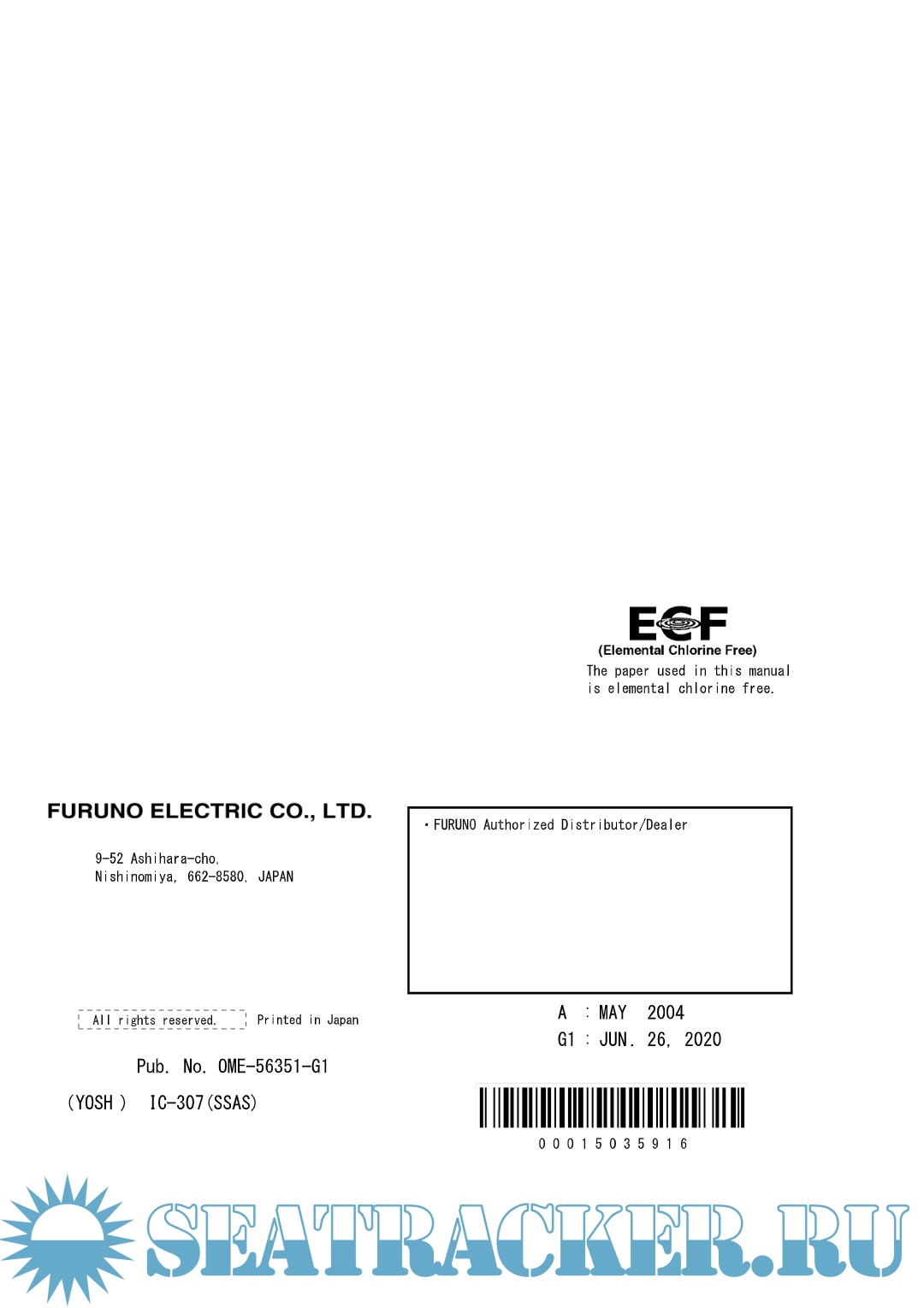 Description: This Operator's manual describes precautions, operations and troubleshooting of FURUNO SSAS IC 307