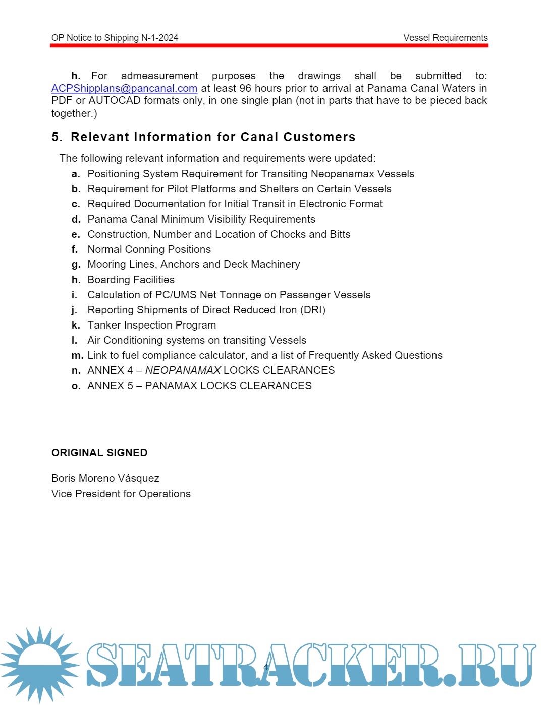 Panama Canal Vessel requirements OP notice to shipping 1 of 2024
