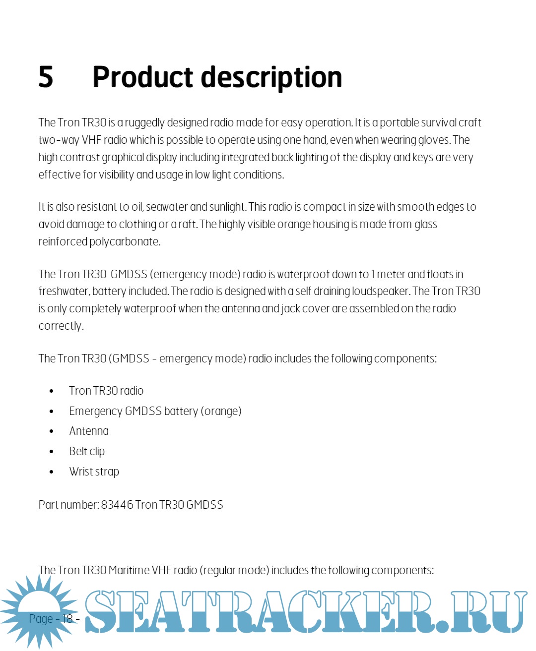 Description: This Operator's manual describes precautions, operations and troubleshooting of Jotron Tron TR30 GMDSS Radio