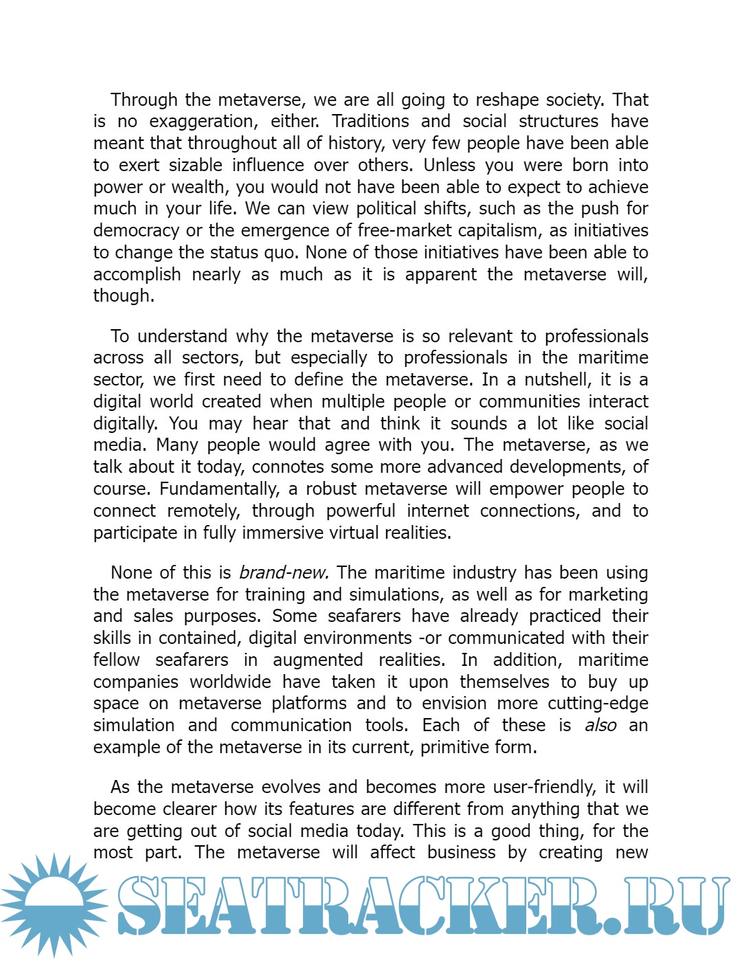 In this book, he analyzes six of the key ways that the metaverse is going to affect the maritime sector, as well as things that seafarers and maritime professionals can do to prepare.