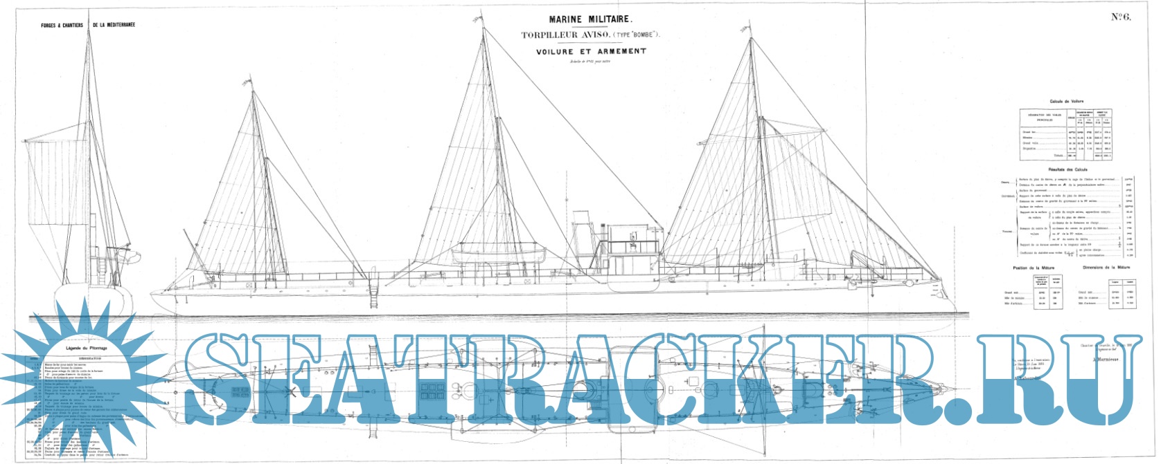 Архивные чертежи французского миноносца CORSAIRE 1892 год - нет данных [1892, TIFF]