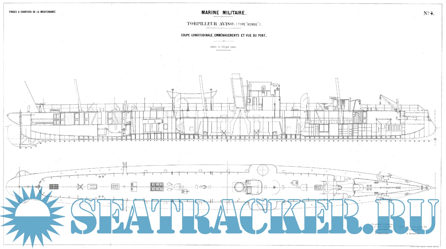 Архивные чертежи миноносца BOMBE 1885 год (Франция) - нет данных [1885, TIF]
