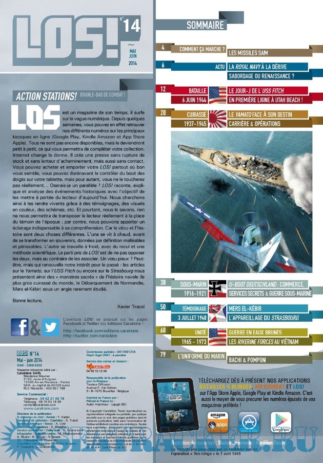 Year: 2014 Language: French Author: Collective Genre: Periodical publication Edition: 2014 05-06 Format: PDF Quality: eBook Pages count: 84 Description: LES ÉDITIONS CARAKTÈRE PRENNENT LE LARGE EN LANÇANT UN NOUVEAU MAGAZINE CONSACRÉ À LA GUERRE NAVALE !Les sujets passionnants ne manquent pas et LOS ! met un point d’honneur à les présenter au lecteur comme cela n’a jamais été fait dans la presse française jusqu’à présent. Un seul mot d’ordre pour l’équipe rédactionnelle : rigueur scientifique et présentation ludique !S’appuyant sur un fond photographique d’exception, sur des plans de bateaux et d’avions, les éditions Caraktère innovent une fois de plus en vous proposant aussi des vues 3D détaillées, le tout au service de textes soigneusement rédigés par des auteurs spécialisés. Vous comprendrez ainsi comment fonctionne un submersible, comment se déroule un combat naval, comment est conçu un cuirassé ou comment attaquent les avions-torpilleurs !Revivez au fil des pages l’aventure humaine exceptionnelle des matelots de la marine marchande affrontant les U-Boote en Arctique, ou celle des pilotes embarqués sur les porte-avions américains et japonais. Lisez les exploits des hommes-grenouilles italiens en Méditerranée, des équipages des vedettes lance-torpilles dans la Manche, des sous-marins soviétiques de la guerre froide ou des grands cuirassés de 1914-18