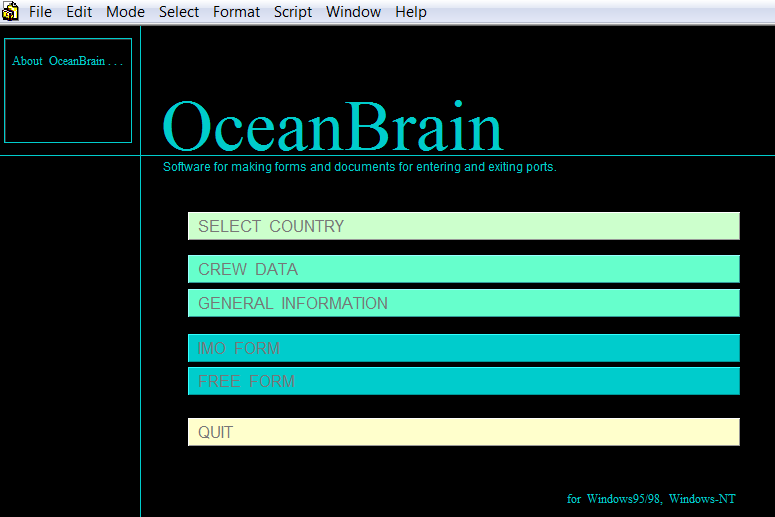 OceanBrain Год выпуска: 2010 Платформа: РС Совместимость с Windows7: полная Язык интерфейса: только английский Таблэтка: Не требуется Описание: Программа представляет собой библиотеку судовых документов для оформления прихода-отхода судна в порт, для всех морских стран, в виде картотеки. Очень полезная и удобная программка для штурманов занимающихся судовыми документами с возможностью заполнения и печати.