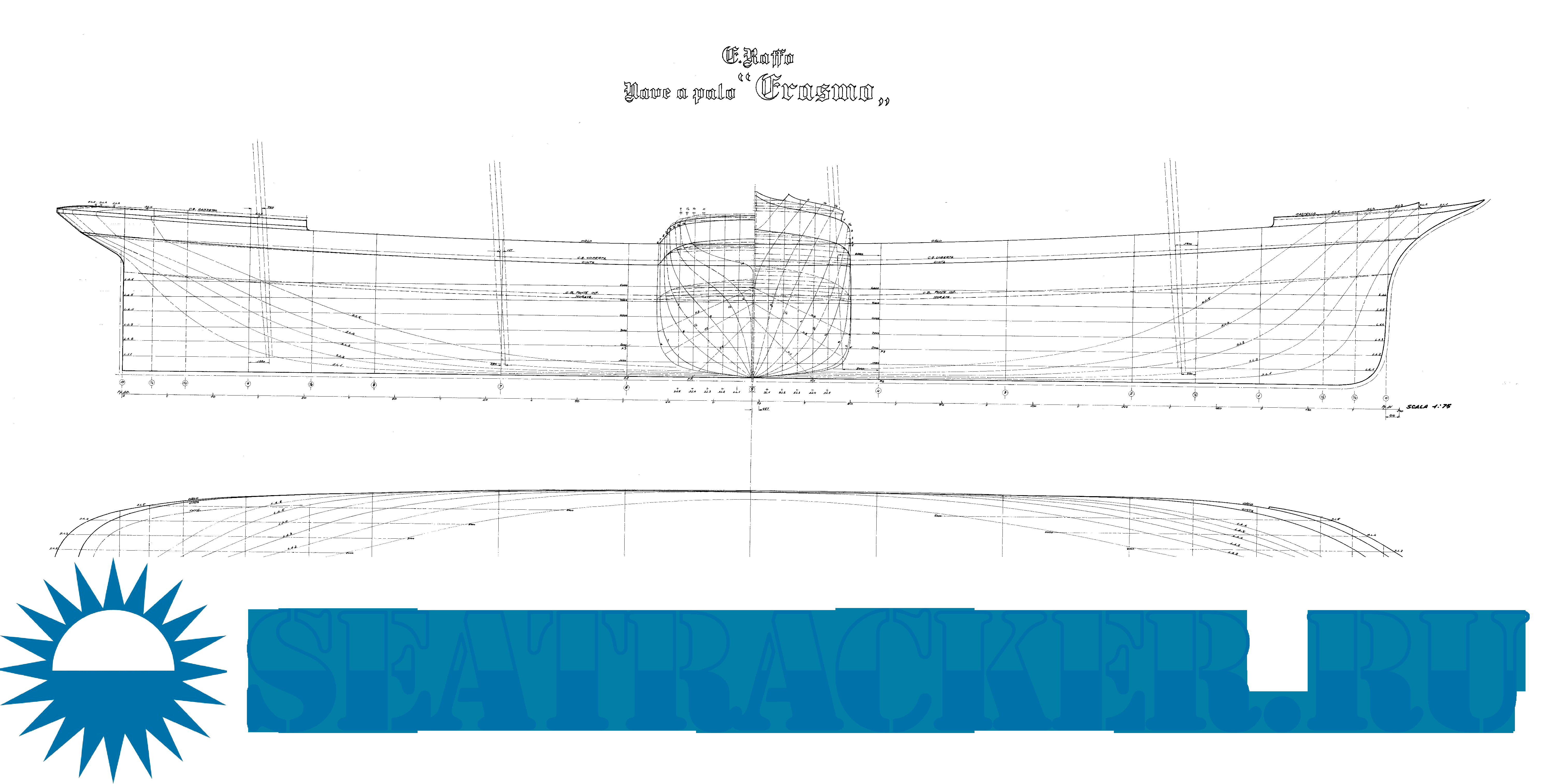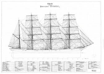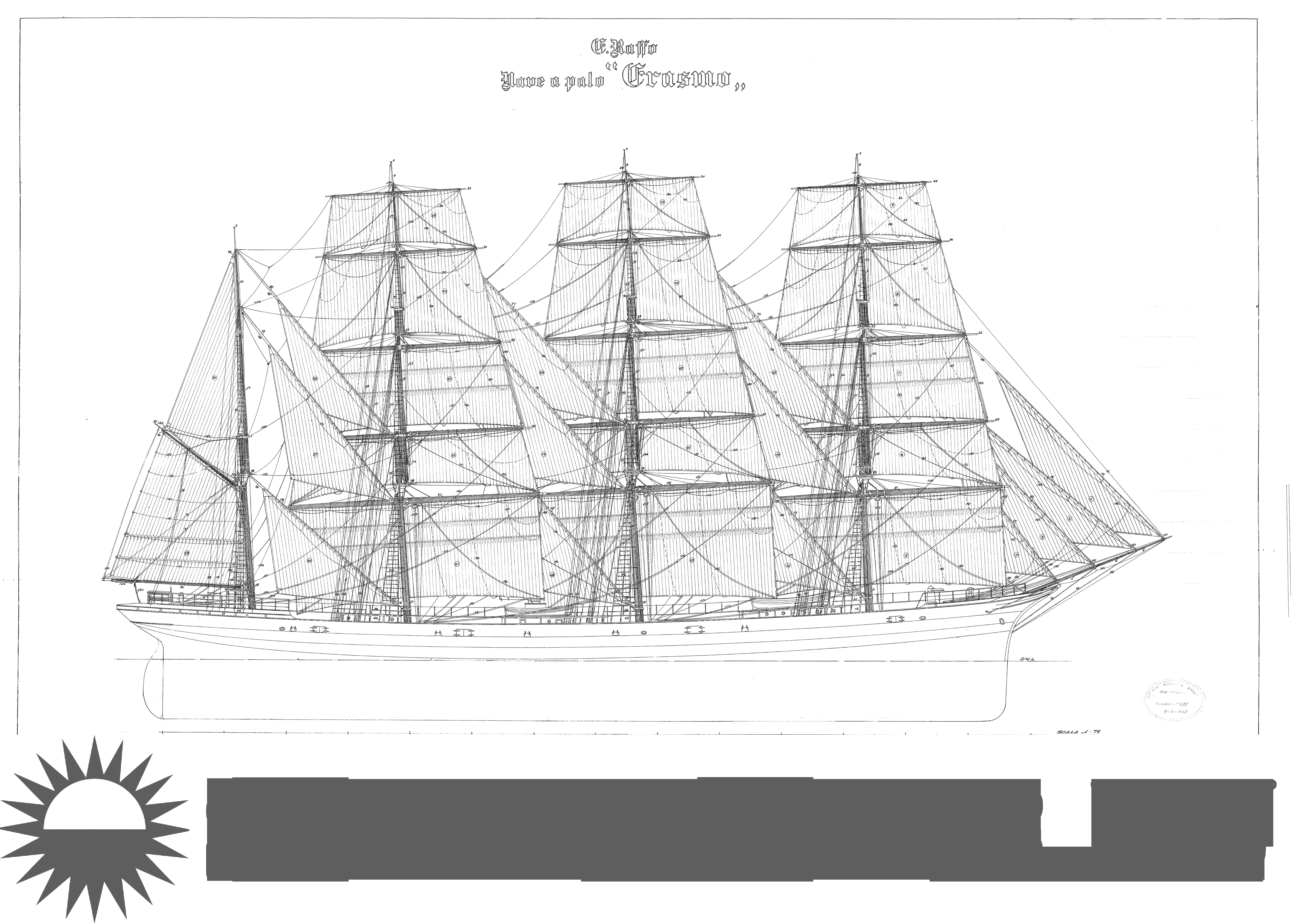 Описание: 4 листа чертежей и изображений итальянской 4-мачтовой шхуны Erasmo (Erasmus) 1903 год