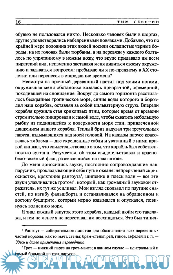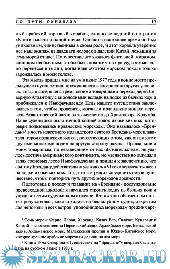 Описание: С детства влюбленный в сказания о скитаниях Синдбада-морехода, Северин отправляется по следам знаменитого бродяги - на корабле, построенном по средневековой технологии. Вдохновленный дневниками прославленного исследователя А.Р.Уоллеса, он совершает плавание по Островам пряностей на индонезийской прау. И наконец, Тим Северин приглашает читателя на Золотые Антилы, острова искателей приключений, романтиков и пиратов.