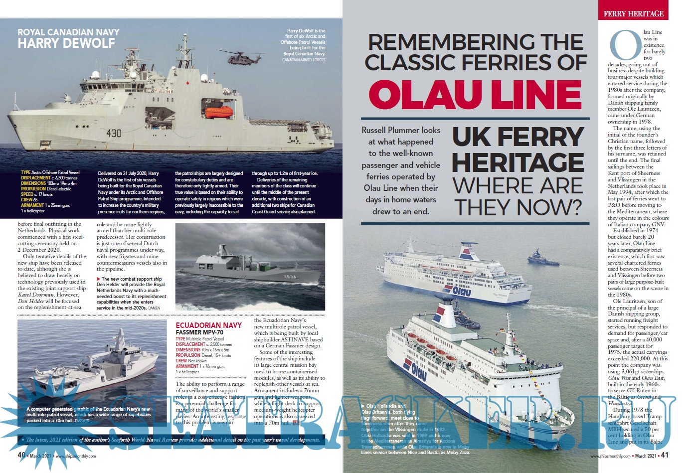 Description: Ships Monthly is the world's leading international shipping magazine. Ships Monthly provides news and features for ship enthusiasts and maritime professionals, including reports on the ferry, cruise, new building and cargo ship scene as well as navies across the world.The latest issue of Ships Monthly is out now, and is packed with all the usual news and features, including outstanding articles and features.