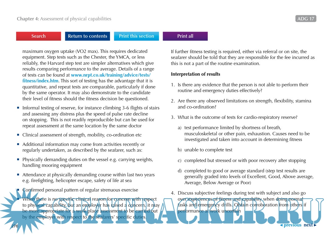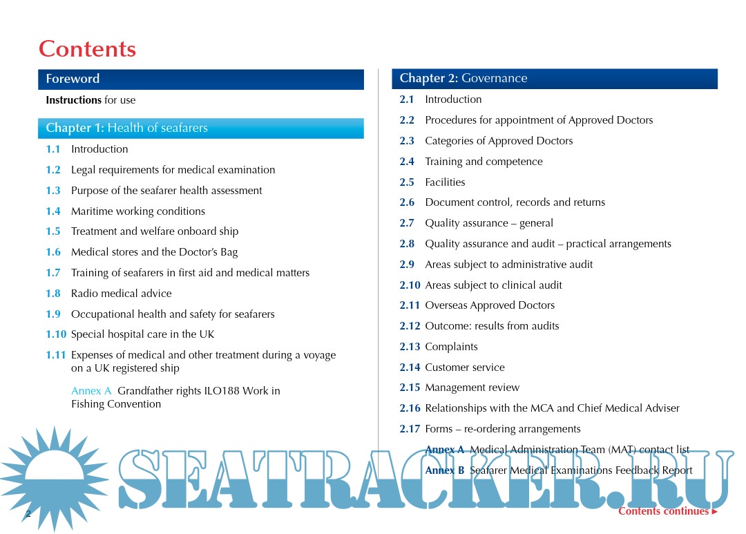 Description: This manual details the procedures to be followed to ensure that medical assessments for seafarers serving on UK ships are carried out to the standards required by the Maritime and Coastguard Agency in terms of compliance with statutory requirements, good medical practice and accountability.