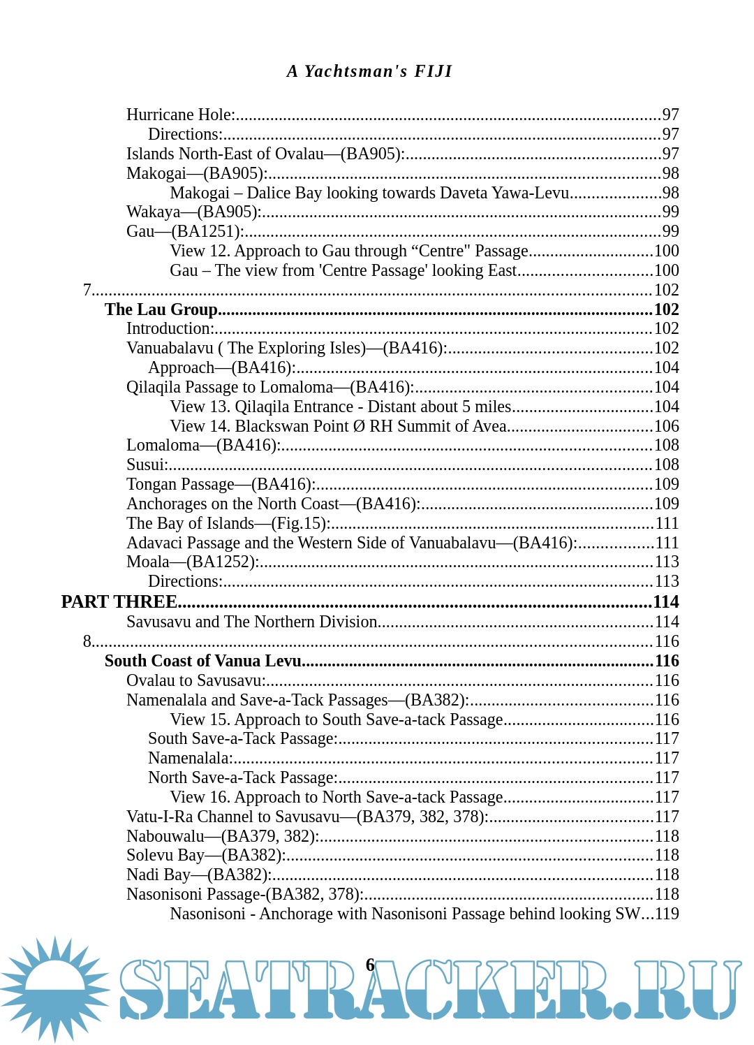 Year: 1987 Language: English Author: Calder M. Genre: Guide Publisher: The Cruising Classroom ISBN: 0 646 14682 3 Format: PDF Quality: eBook Pages count: 265 Description: In July of 1984, I arrived in Fiji from Vanuatu in my yacht 'Eureka', and after clearing customs at Lautoka, set off to cruise in the Yasawas. Charts were non-existent, but I was able to obtain some second-hand copies of 'Pickmere's' from a fellow yachtie who was moving on to Vanuatu. Until that time I had no knowledge of their existence and had already found that, except for the Pacific Islands Pilot Vol.II, published by The Hydrographer of the Navy, there was no information of any sort on the waters of Fiji, particularly those areas of interest to a yachtsman.