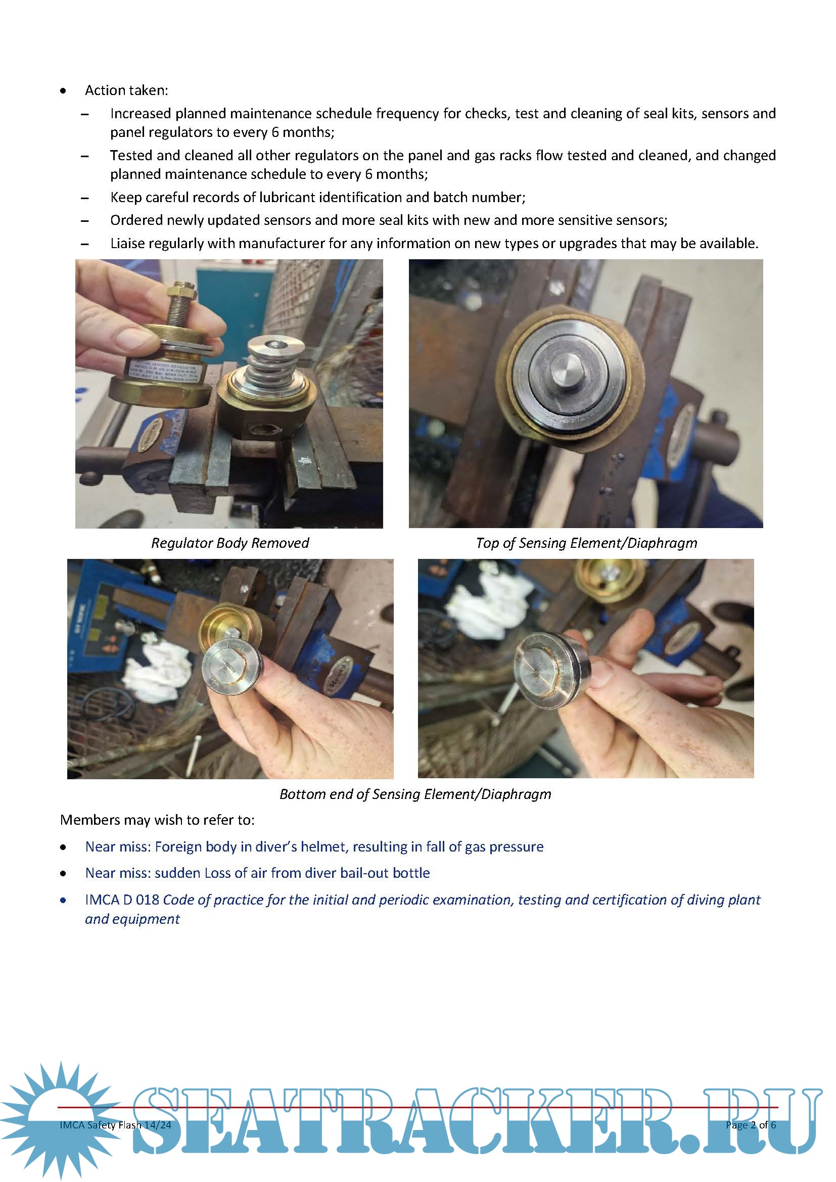 Description: The International Marine Contractors Association ( IMCA ) Safety Flashes disseminate important information on incidents and potential hazards and the lessons learnt from them that can help prevent incidents occurring elsewhere in the industry.