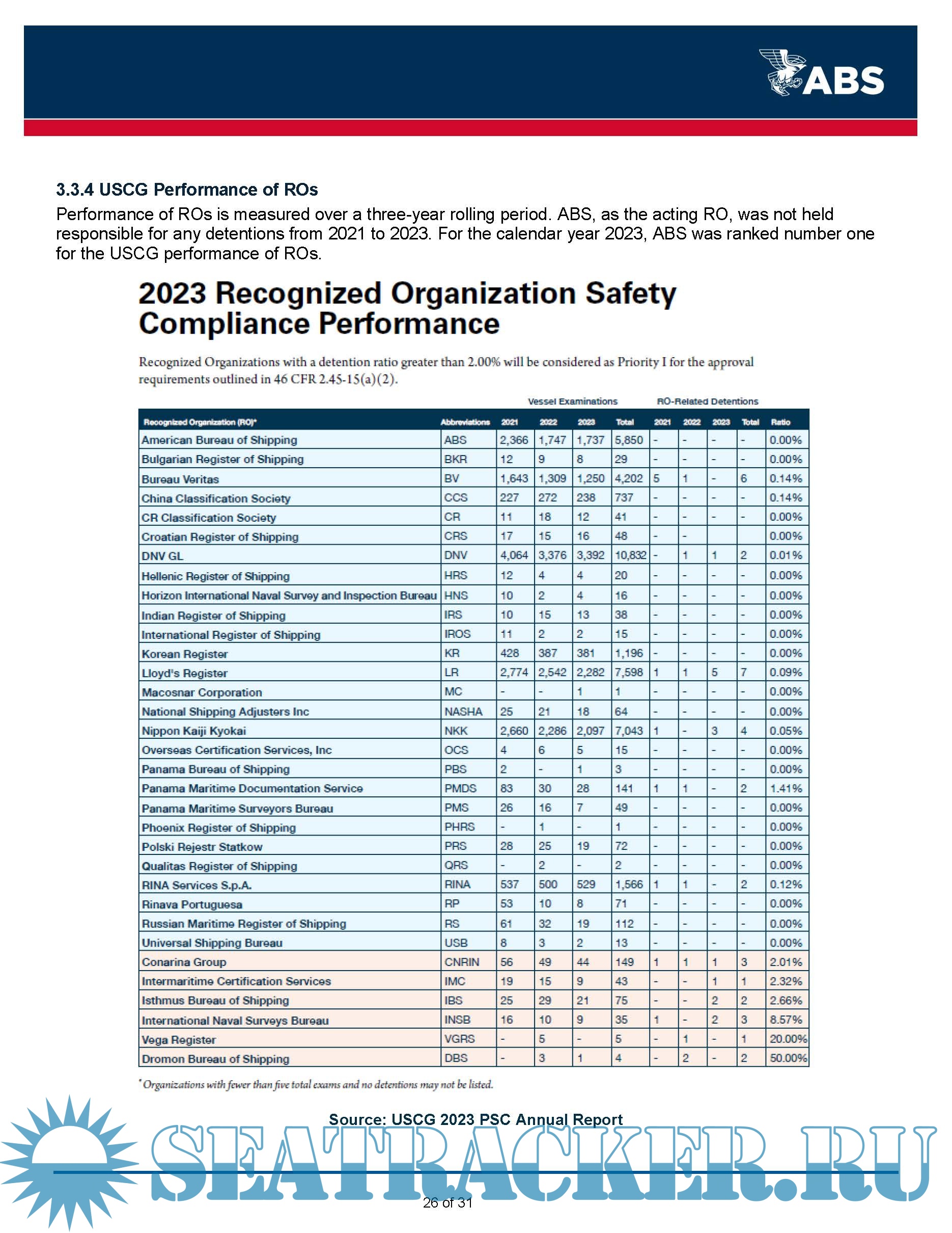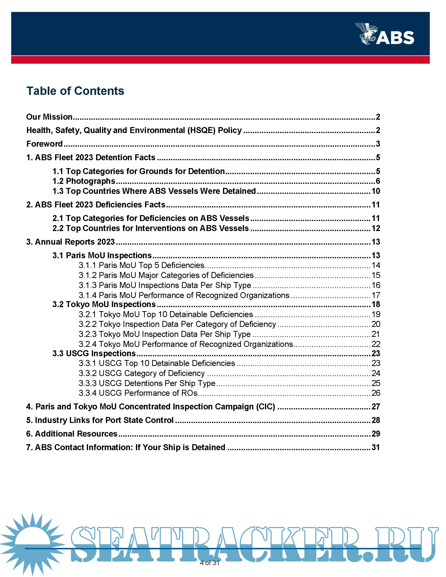 Description: This ABS Annual Report 2023 on Port State Control (PSC) provides information to owners on deficiencies identified on ABS vessels during inspections carried out by the various PSC regimes globally during the 2023 calendar year. This report is being made available to assist owners by providing awareness of potential areas of concern that have been identified on ABS classed vessels.