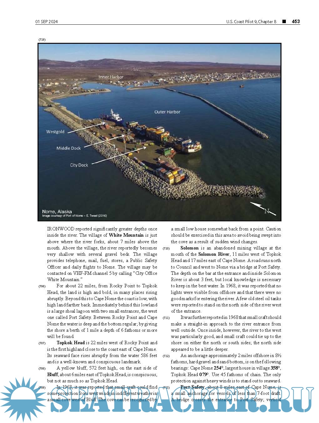 Year: 2024 Language: English Author: NOAA Genre: Documentation Publisher: NOAA Edition: 2024 (42nd) Edition Format: PDF Quality: eBook Pages count: 545 Description: The United States Coast Pilot® consists of a series of nautical books that cover a variety of information important to navigators of coastal and intracoastal waters and the Great Lakes. Issued in ten volumes, they contain supplemental information that is difficult to portray on a nautical chart. Topics in the Coast Pilot include channel descriptions, anchorages, bridge and cable clearances, currents, tide and water levels, prominent features, pilotage, towage, weather, ice conditions, wharf descriptions, dangers, routes, traffic separation schemes, small-craft facilities, and Federal regulations applicable to navigation. This edition cancels the 41st Edition and includes all previously published corrections. This publication has been updated through: 01-Sep-2024