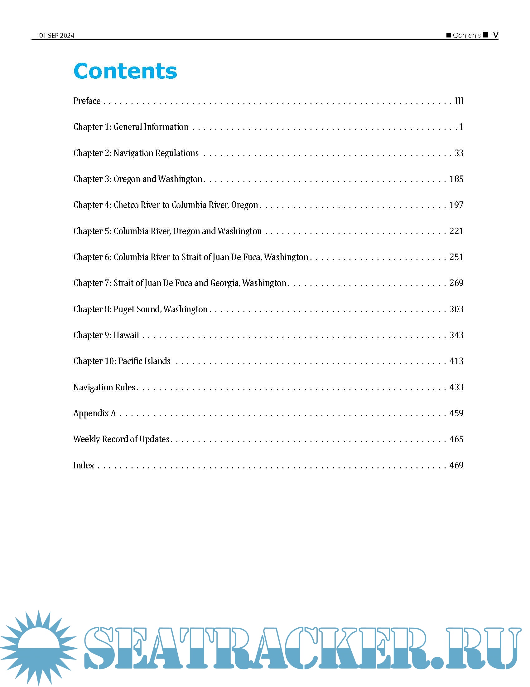 Topics in the Coast Pilot include channel descriptions, anchorages, bridge and cable clearances, currents, tide and water levels, prominent features, pilotage, towage, weather, ice conditions, wharf descriptions, dangers, routes, traffic separation schemes, small-craft facilities, and Federal regulations applicable to navigation.