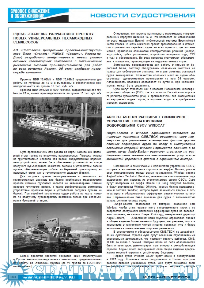 Описание: ''Судовое снабжение и обслуживание'' периодический информационный бюллетень, издается с 1999 года и в настоящее время по праву занимает одно из ведущих мест среди специализированных отраслевых печатных изданий.Бюллетень стал надежным маркетинговым инструментом для технического менеджмента судостроительных, судоремонтных и снабженческих компаний. Более 500 отечественных и зарубежных фирм рекламодателей успешно сотрудничают с журналом с целью расширения своего бизнеса.Бесспорным преимуществом является бесплатное распространение издания целевой адресной рассылкой: судостроительным и судоремонтным предприятиям; морским и речным портам; судовладельцам морского, речного, промыслового флота; производителям и поставщикам судового оборудования, снабжения и материалов; предприятиям обслуживания флота (всего более 9000 компаний РФ). В журнале представлен весь спектр судового оборудования, комплектующих, запчастей, снабжения и материалов (с указанием контактных данных фирм производителей и поставщиков).
