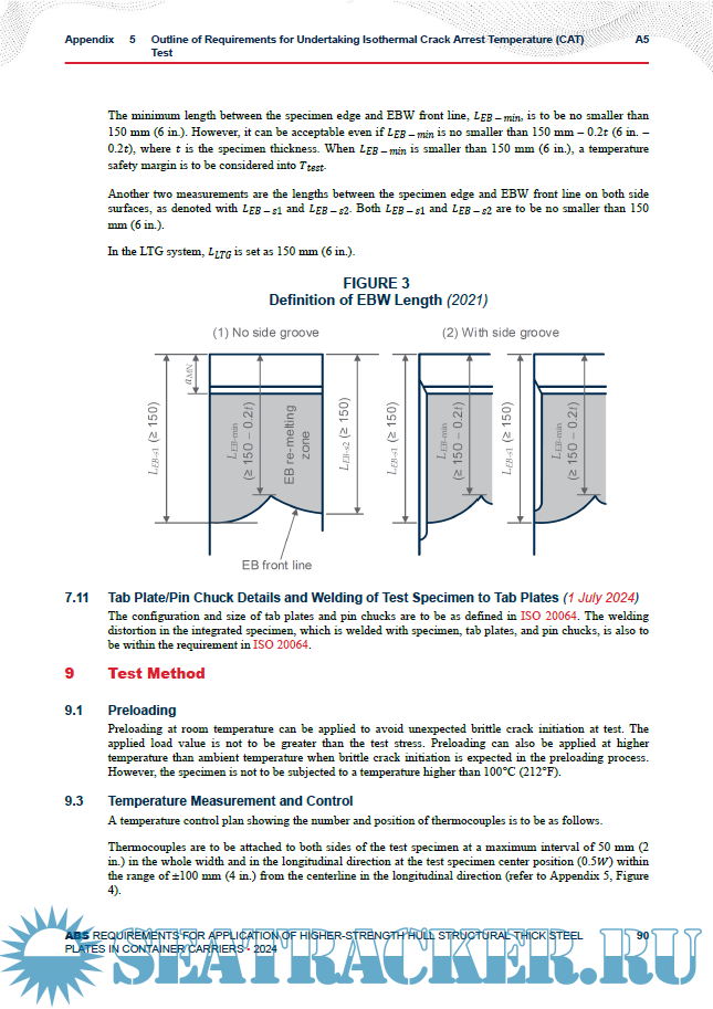 This document provides the requirements for the optional notation, EBCAD (Enhanced Brittle Crack Arrest Design), for the enhanced BCA application of higher-strength hull structural thick steel plates in container carriers.