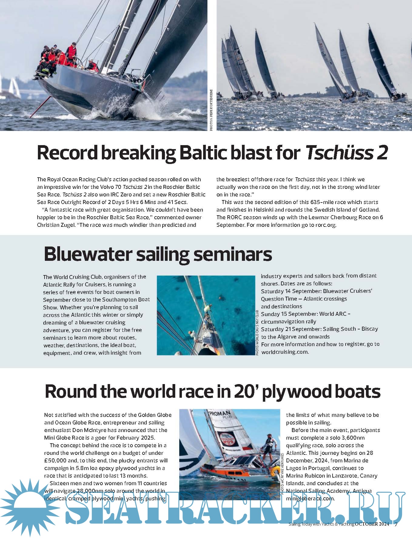 Year: 2024 Language: English Author: Sam Jefferson (Editor) Genre: Periodical publication Publisher: The Chelsea Magazine Edition: October 2024 Format: PDF Quality: eBook Pages count: 116 Description: Sailing Today with Yachts and Yachting monthly magazine issue October, 2024. Sailing Today is the magazine for hands-on cruising sailors whose love of sailing takes them around the British Isles, across the Channel and further, to the blue waters of the wider world. Offering a wealth of practical advice and a dynamic mix of in-depth boat, gear and equipment news. Sailing Today is written cover to cover by sailors, for sailors. Since its launch in 1997, the magazine has sealed its reputation for essential sailing information and advice. Sailing Today is written by sailors for sailors, from our new and used boat tests, to our step by step practical articles and in-depth gear tests, or our inspiring cruising tales from home and abroad.Whatever you want to know from which GPS to buy, or the best way to install central heating Sailing Today provides the best answers. With our fantastic onboard gear tests, the latest boat tests and regular advice about seamanship and navigation, we deliver practical back-up for those who enjoy using their boats and want to get the best from them