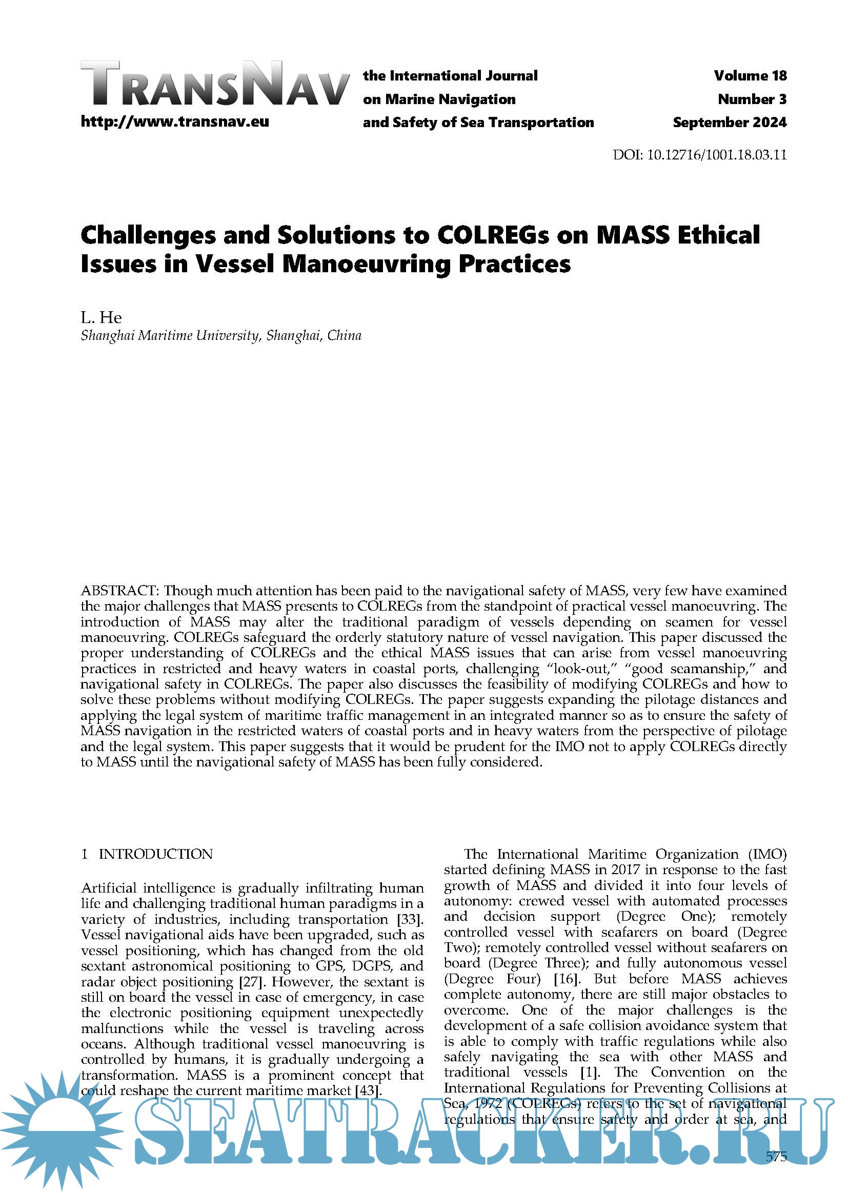 Description: The TransNav, The International Journal on Marine Navigation and Safety of Sea Transportation is addressed to scientists and professionals in order to share their experience, expert knowledge and research results, concerning all aspects of navigation and sea transportation.