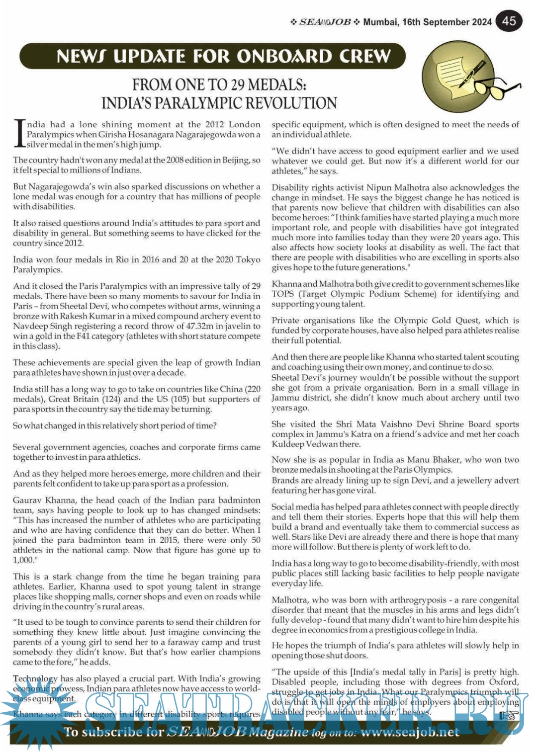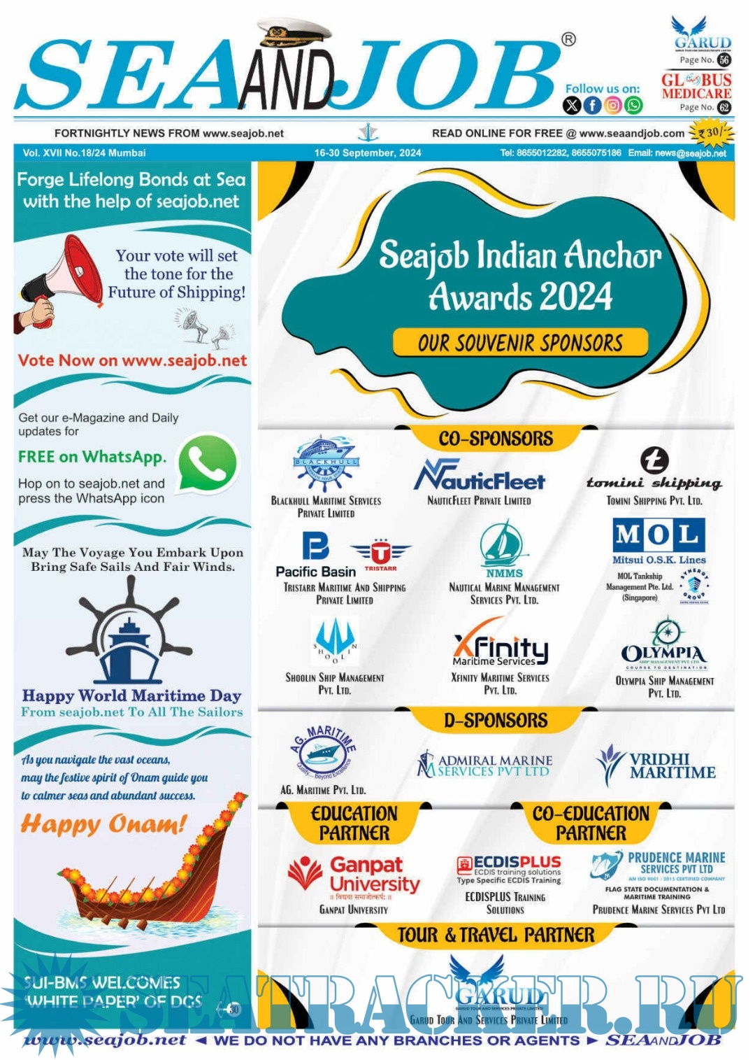 Description: The Sea and Job magazine launched in May 2007, was the second venture of Sea Line Group succeeding 'seajob.net' bringing the much renowned essence to the Group, the Sea and Job Magazine quickly gained popularity, becoming the No. 1 Shipping Magazine that came to be widely circulated all over India.Sea and Job over the years has evolved as the most trusted, ethical, objective and read maritime publication that possesses a large database of subscribers from various verticals in the industry.The magazine provides informative and interesting articles covering not just the shipping world but also the world outside it. Sea and Job is also a medium for the shipping/ manning companies to advertise marine jobs and also to promote their organization by publicizing internal activities like seminars, sports events and parties.Some notable endeavors of the magazine include the Know Your Recruiter Column, the Sailing Episodes Column and the Marine Insights section. The consistent efforts and the dedication to provide extraordinary services to the industry has resulted in the magnifying popularity and patronage of Sea and Job.