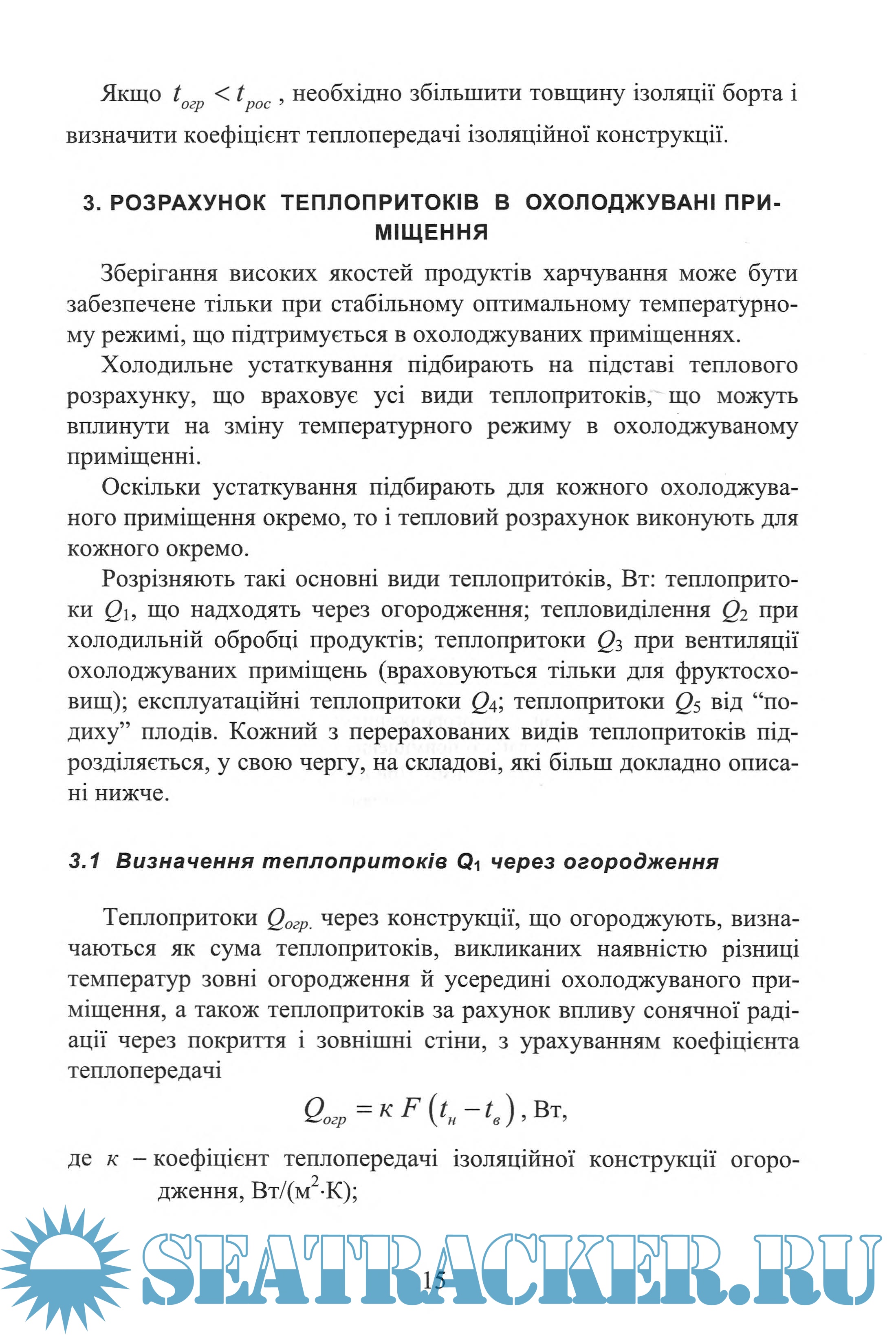 Розглядаються холодильні агенти і холодоносії, вимоги до них, фізичні властивості; вибір конструкції теплоізоляційних огороджень і визначення коефіцієнта теплопередачі для кожного ізольованого огородження з використанням його надалі при розрахунку теплопритоків в охолоджувані приміщення. Дано методику розрахунку теплопритоків і таблиці, куди зводять його результати. Дані також вибір способу і системи охолодження, після чого виконується розрахунок і підбір основних і допоміжних елементів холодильної установки, характеристики яких наводяться в таблицях. Розглянуто різні принципові схеми суднових холодильних установок.