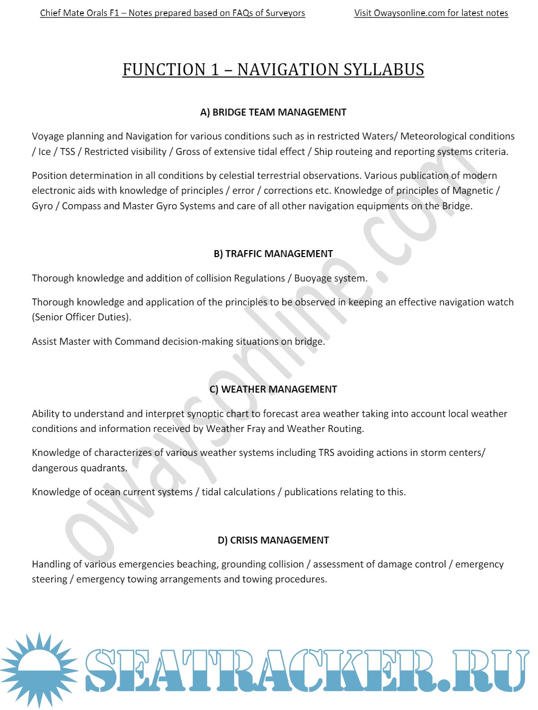 Chief Mate F.G. MMD, India Orals Exams Notes Based on Frequently Asked Questions: Function 1