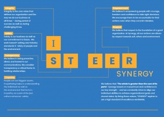 Our anagram ‘i-STEER Synergy’, helps in instilling the core values into every individual in our organisation. By living these values, SYNERGY aspires to set a high standard of excellence.