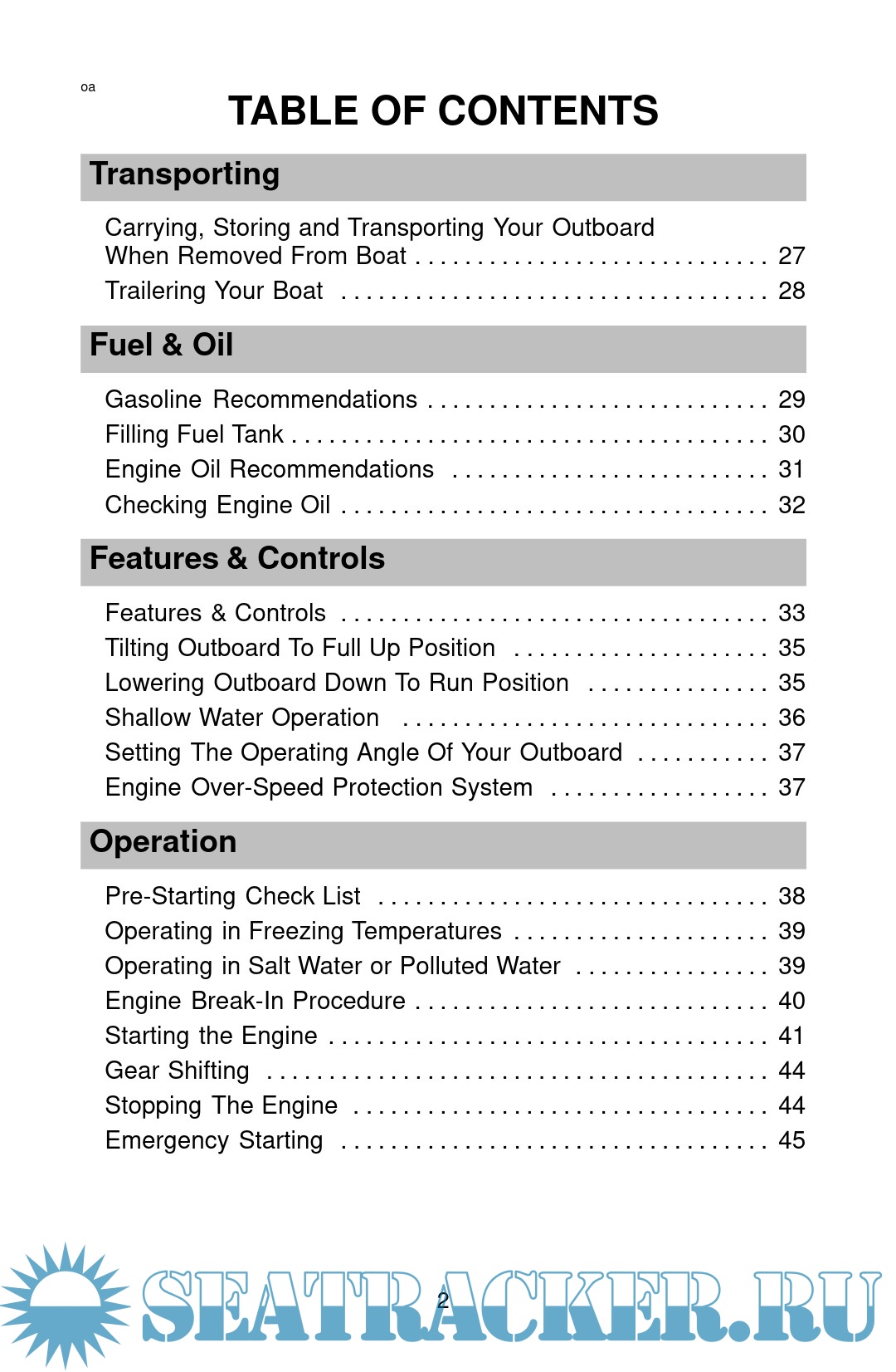 Owner's manual for keelboat outboard motors