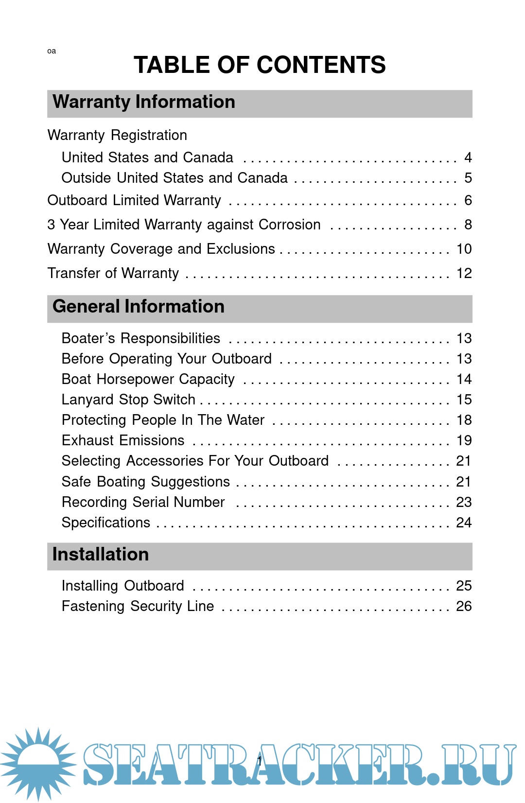 Description: For your purchase of one of the finest outboards available. You have made a sound investment in boating pleasure. Your outboard has been manufactured by Mercury marine, a world leader in marine technology and outboard manufacturing since 1939. These years of experience have been committed to the goal of producing the finest quality products. This led to Mercury Marine’s reputation for strict quality control, excellence, durability, lasting performance and being the best at providing after-the-sale support.