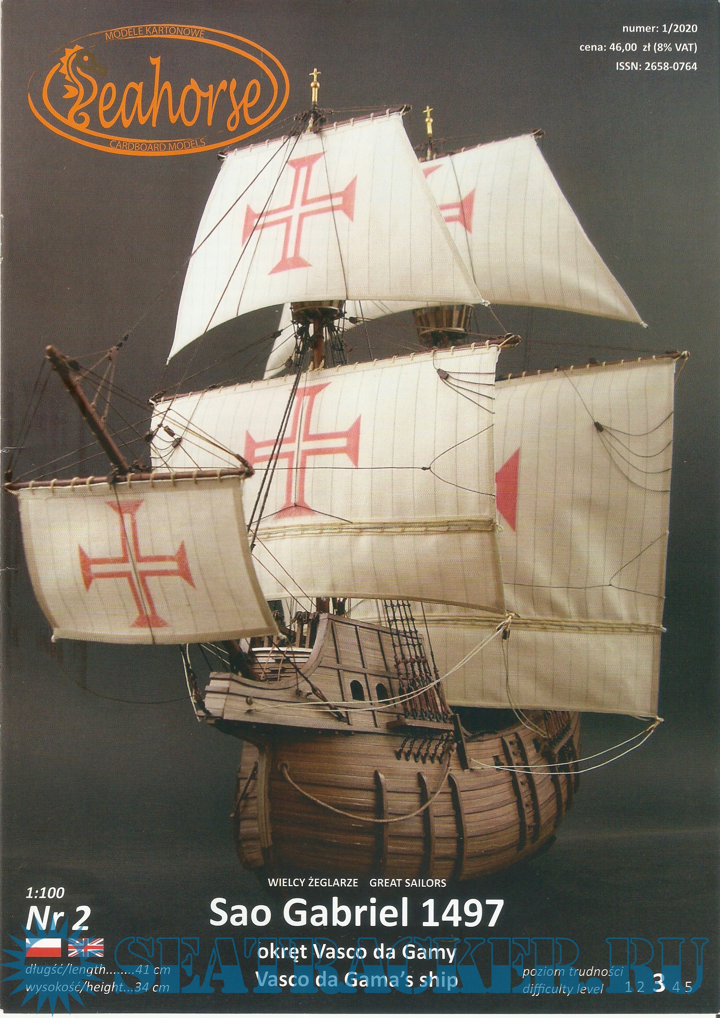 Описание: 25 листов цветных выкроек и инструкций для изготовления бумажной модели парусного судна Васко да Гама "Sao Gabriel" 1497 год в масштабе 1:100