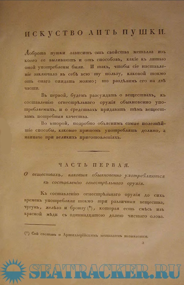 Содержит подробные описания технологии изготовления артиллерийских орудий во времена наполеоновских войн. Изложение отличается простотой и доходчивостью, сопровождается наглядными изображениями в виде гравюр, чертежей и рисунков.