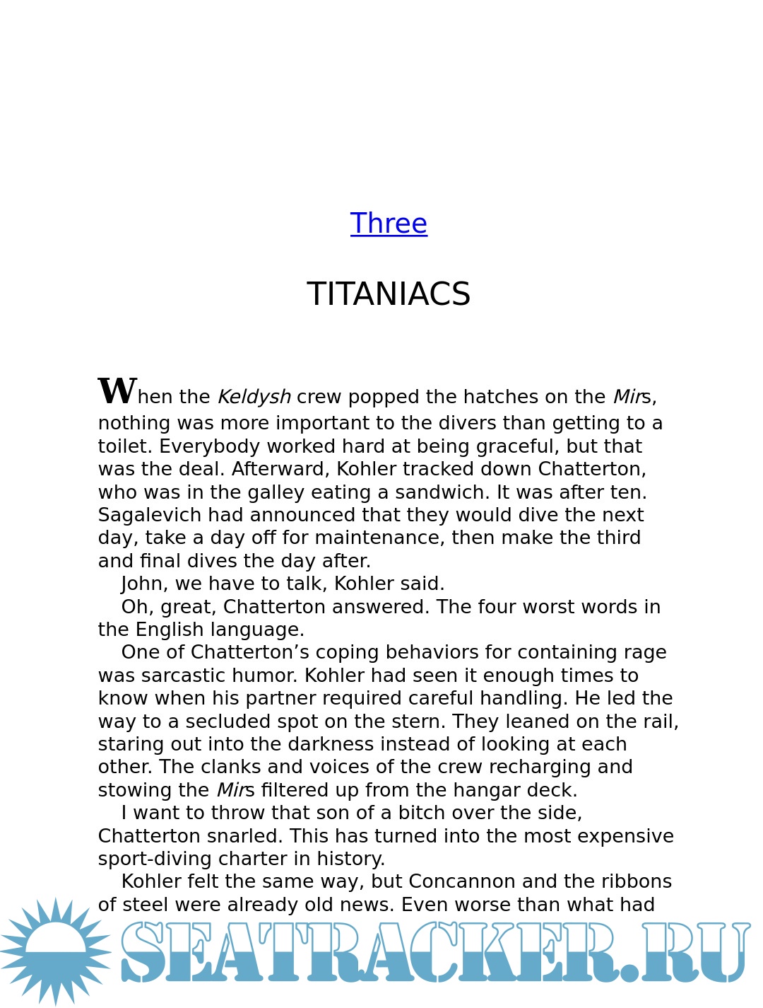 John Chatterton and Richie Kohler contributed to the research of Titanic's Last Secrets, as they did for Robert Kurson's Shadow Divers, the 2005 Book Sense Nonfiction Book of the Year.