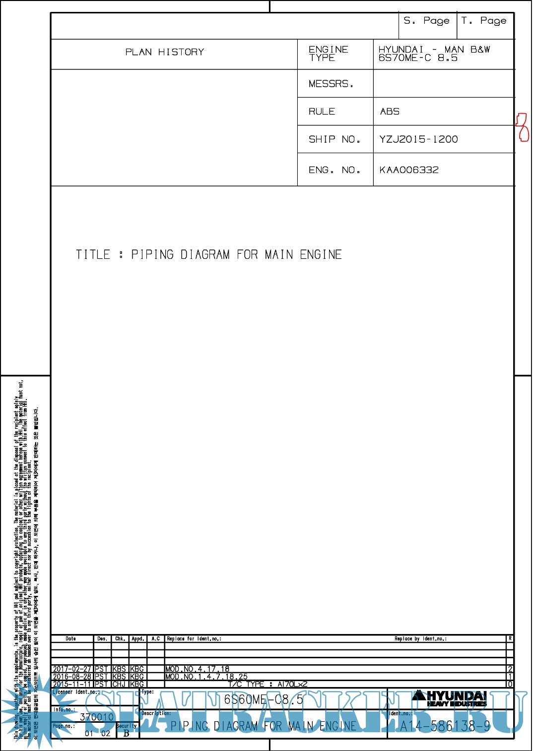 Hundai MAN B&W 6S70ME-C8.5 Final drawings for Main Engine