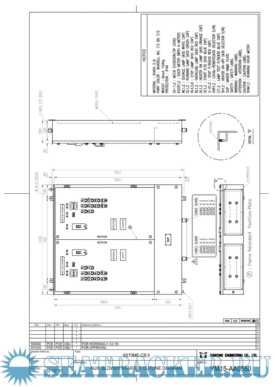 Description: Final drawings for Main Engine Hundai MAN B&W 6S70ME-C8.5.