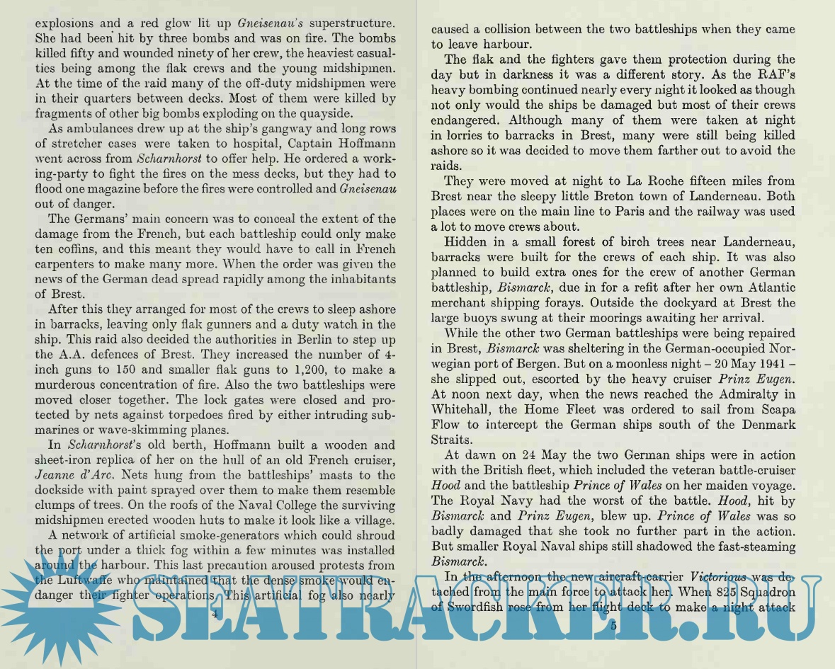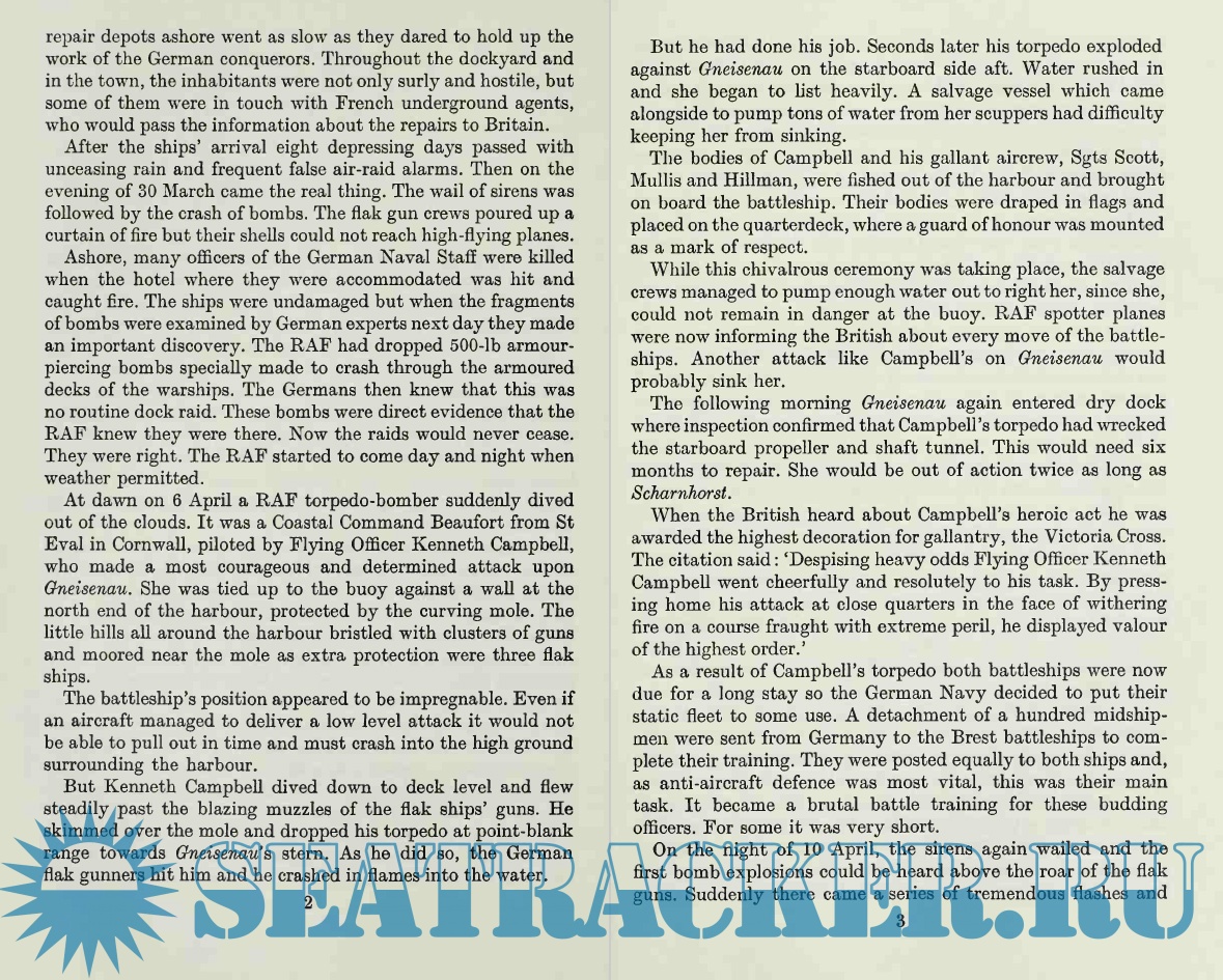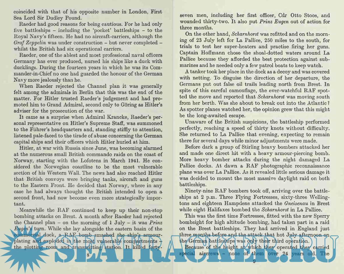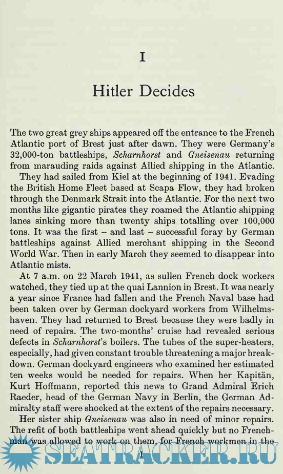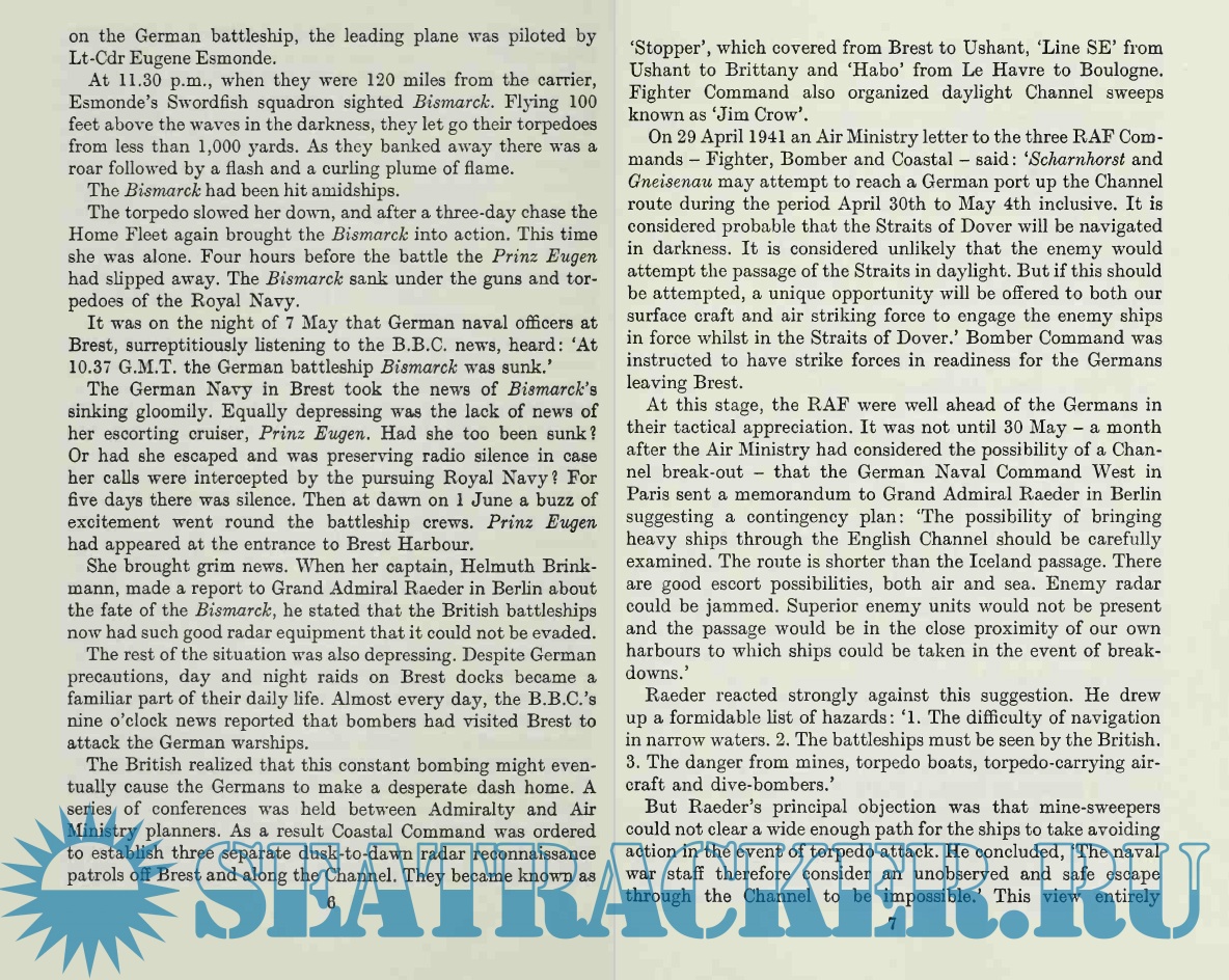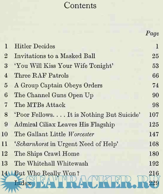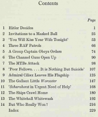 Description: This well-written book details the events surrounding the "breakout" of the German ships Scharnhorst, Gneisenau, and Prinz Eugen from the French port of Brest back to Germany, going straight through the narrow English Channel in broad daylight. The British were caught totally off-guard and, apart from a few valiant but suicidal attacks by a handful of planes and a few ships, the German ships sailed right under the cliffs of Dover and back to Germany practically unscathed. The event mortified and embarrassed the sea-going British and gave a boost to German morale at a time that their fortunes were firmly changing against them.
