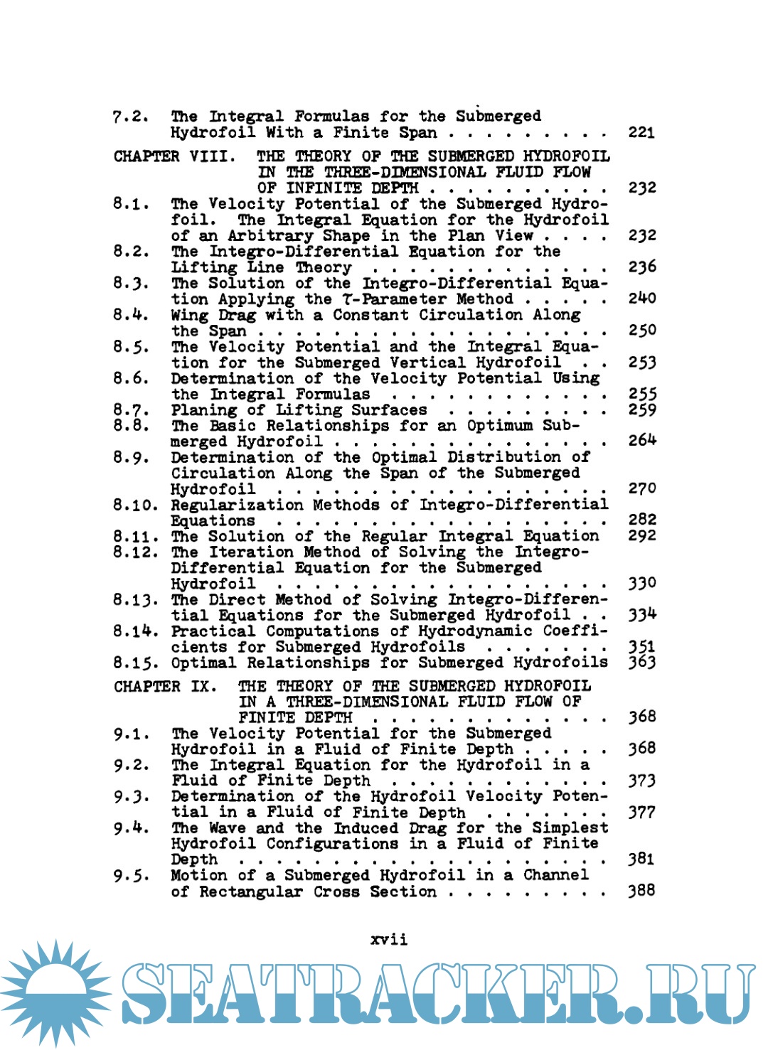 The book considers the theory of steady motion of a wing with an arbitrary profile in a plane-parallel flow; the linear theory of thin hydrofoils in the two-dimensional and three-dimensional flows; the theory of a hydrofoil in an unsteady flow; problems of the interaction of hydrofoils and motion of hydrofoils near the interface of fluids with different densities.