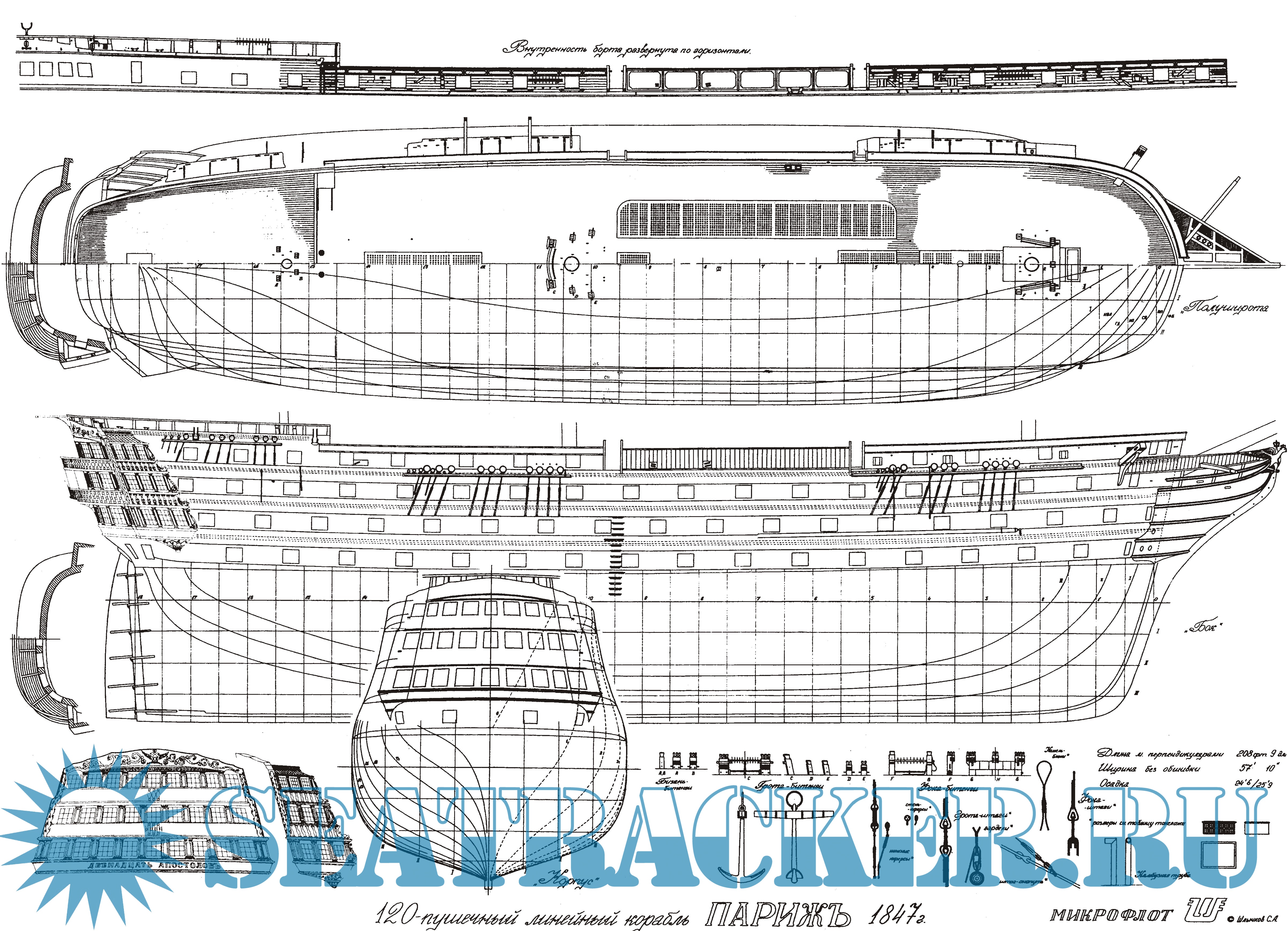 Чертежи линейного корабля 100-пушечного ранга "Трех Иерархов" - Ларионов [2000, JPEG]