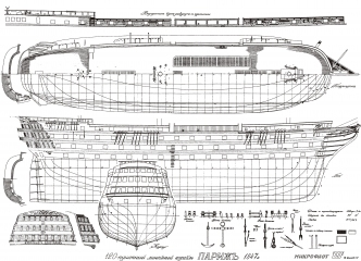 Описание: 7 листов чертежей линейного корабля ''Париж'' 1847 год