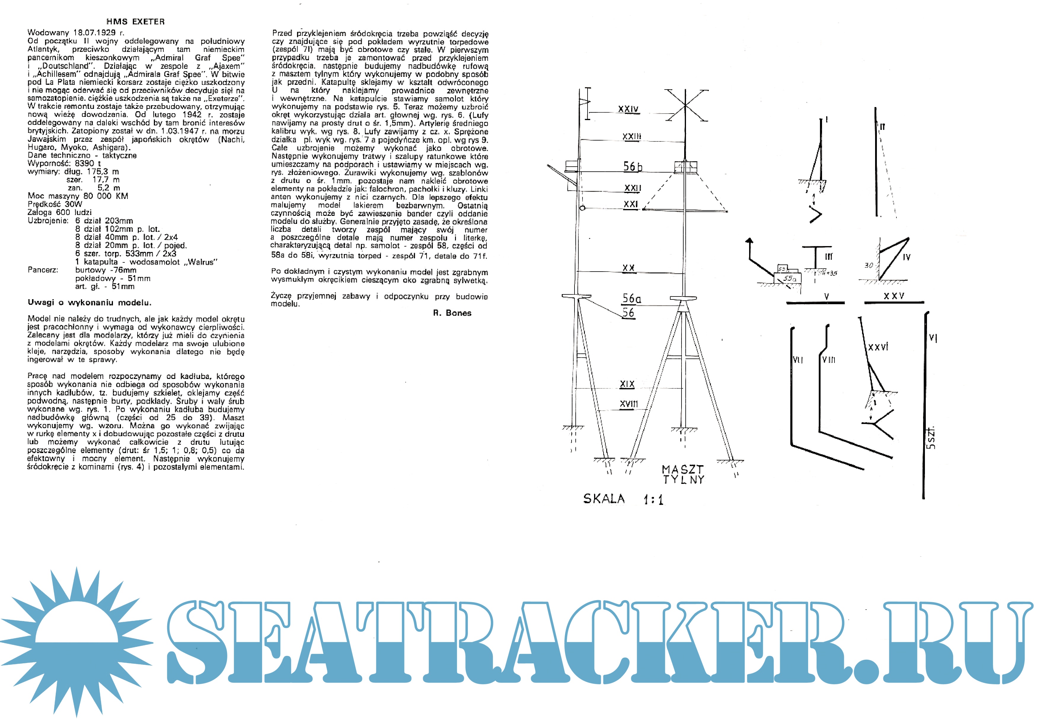 Описание: 11 листов цветных выкроек и инструкций для изготовления бумажной модели тяжёлого крейсера "HMS Exeter" 1929 год Великобритания в масштабе 1:200