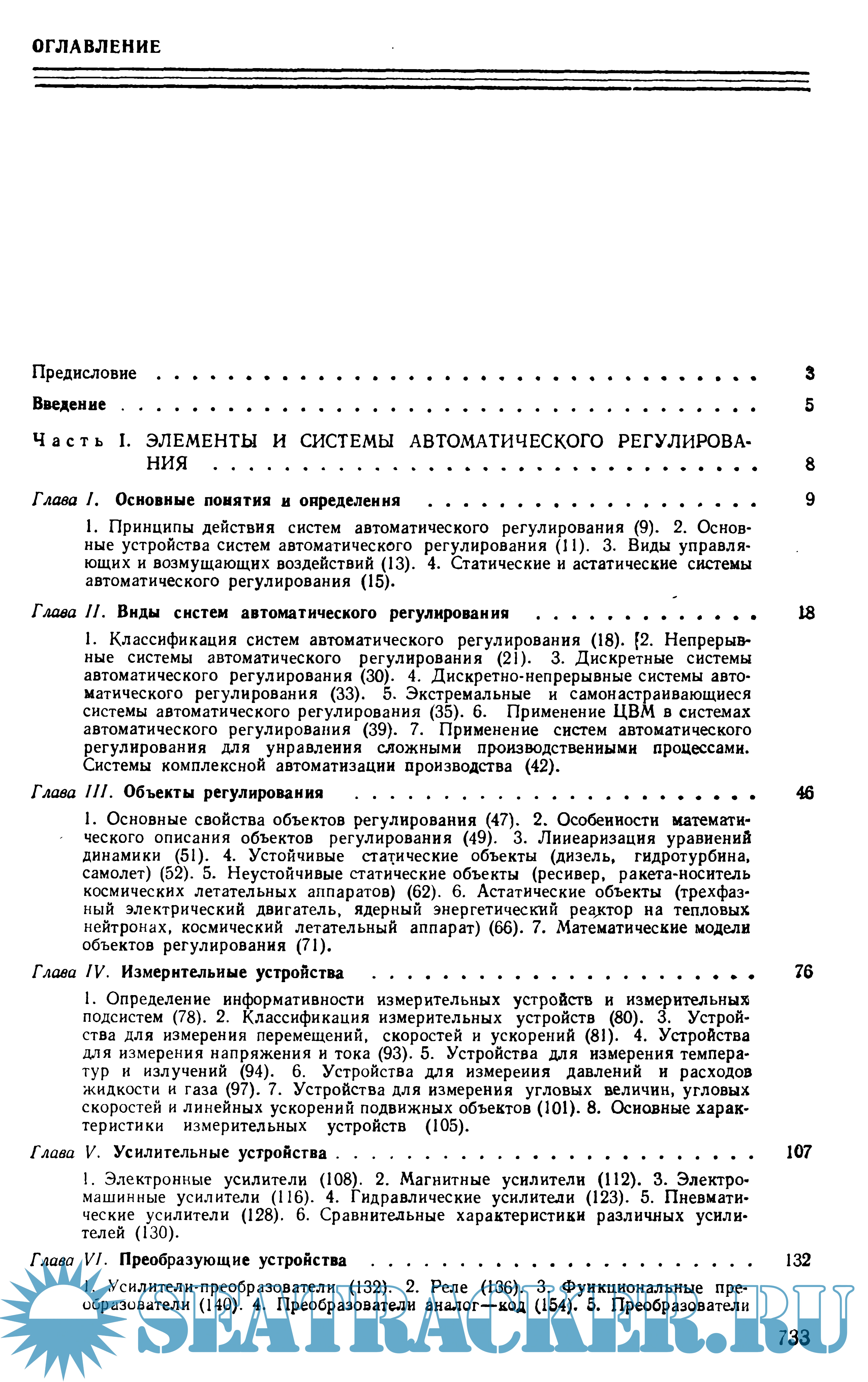 Книга состоит из трех частей. Первая часть посвящена описанию принципов действия, способам составления уравнений динамики, передаточных функций и структурных схем элементов и систем автоматического регулирования.